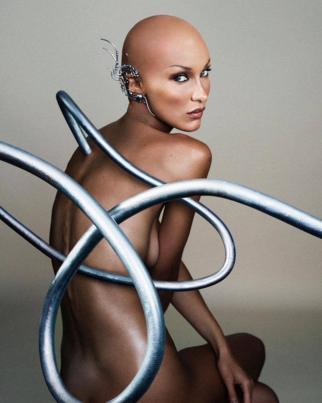 Слідом за кампейном із Кім Кардаш’ян, центральним елементом серії фотографій стають іконічні Kiki boots на високій платформі. Гадід позує в айтемах, притаманній естетиці Heaven — мініспідницях, коротких топах і футуристичних аксесуарах.