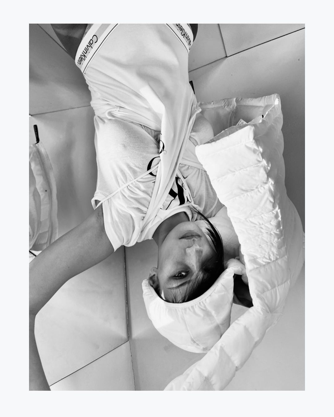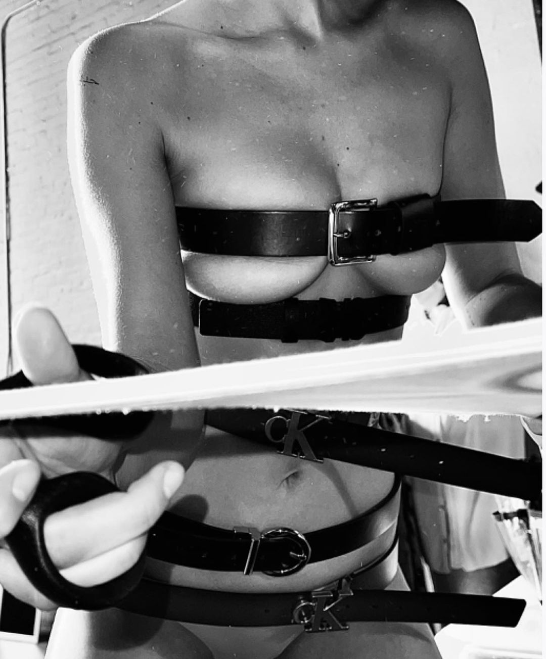 Так, на фотографиях Хадид примеряет хлопковое белье и базовую одежду из классической линейки Calvin Klein. На самых ярких снимках – позирует в ремнях с логотипом бренда, повязав их на свое обнаженное тело как портупею. Кстати, съемку Белла Хадид стилизовала сама.