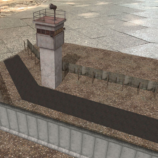 Желающие смогут увидеть архитектуру стены и посмотреть на события в динамике. Также дизайнеры воспроизвели атрибуты, такие как укрепления, наблюдательные посты, КПП, и солдат.