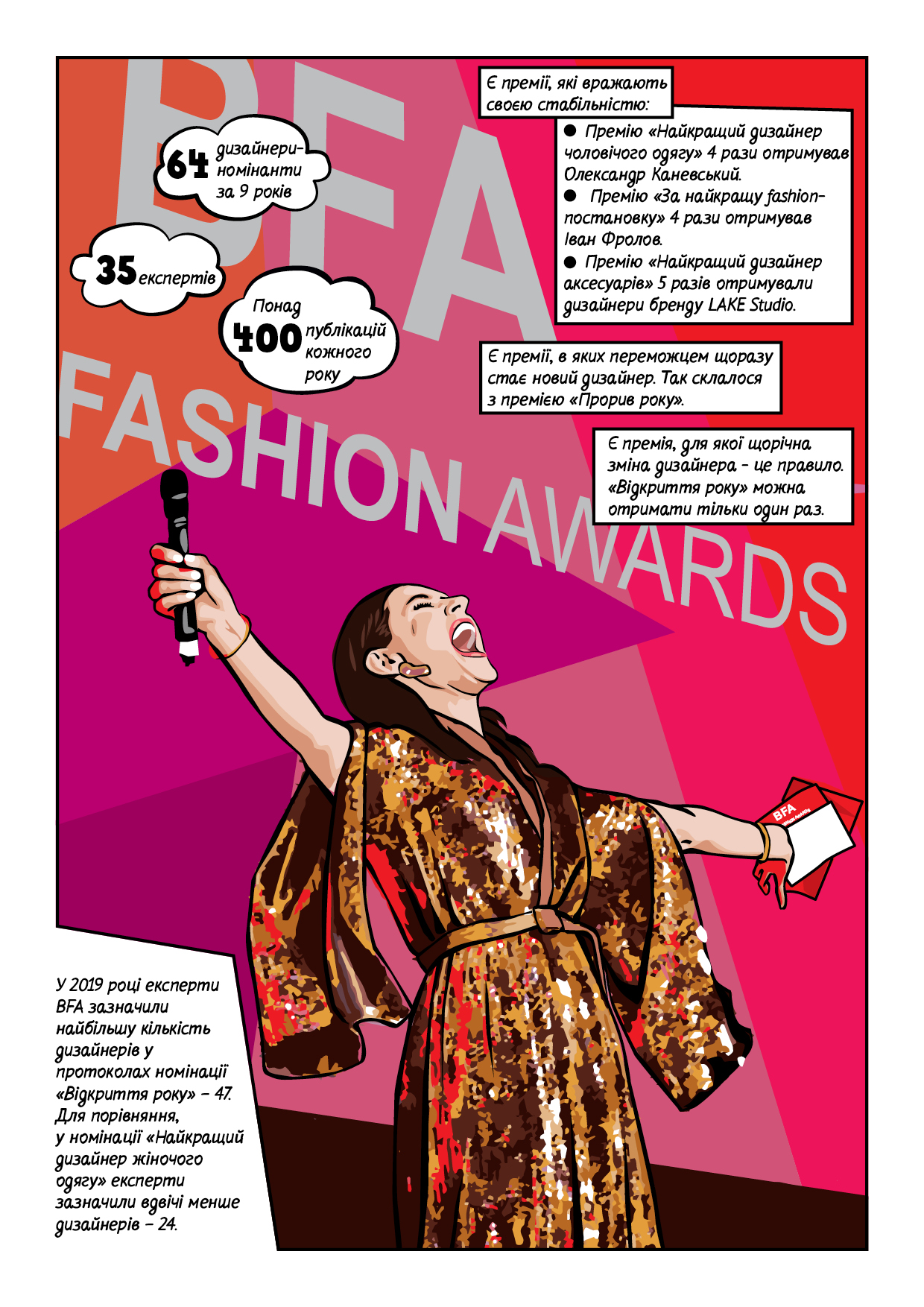 Премію Best Fashion Awards вручають у семи номінаціях, що визначаються експертами, а також премію "Натхнення", долю якої вирішують самі дизайнери.