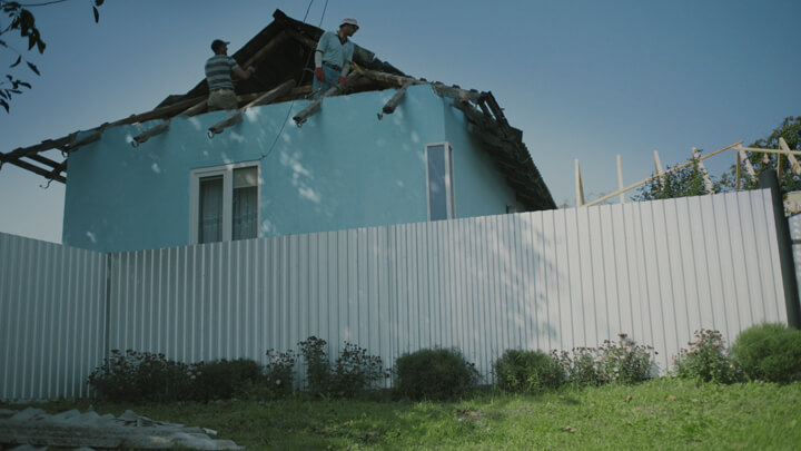Інсталяція Вови Воротньова певним чином сумує досвід, набутий в процесі здійснення проекту «ЗА/СХІД»: влітку з 28 квітня по 1 червня Воротньов з вугіллям із рідного міста Червонограду дійшов до Лисичанську. Автор робив репортажну хроніку в акаунті @za_s_xid, для виставки «Небо Синє-Синє» візуалізує свій досвід пілігрімажу. В наївній картині його цікавить «маргінес» - не сталі сюжети картин, але те, що маляр додавав із свого буденного життя. Саме цей матеріальний побут стає в центрі уваги Воротньова, який вивчає його матеріальну (доходячи до висновку, що простір села є «благородним» завдяки матеріалам) та символічну складову. Інсталяцію «відкриває» сільська брама радянських часів з архетипічними знаками сонця, неба та землі, яка задає логіку авторського бачення: звичайне життя, яке розглядають скрізь музейні рамки.
