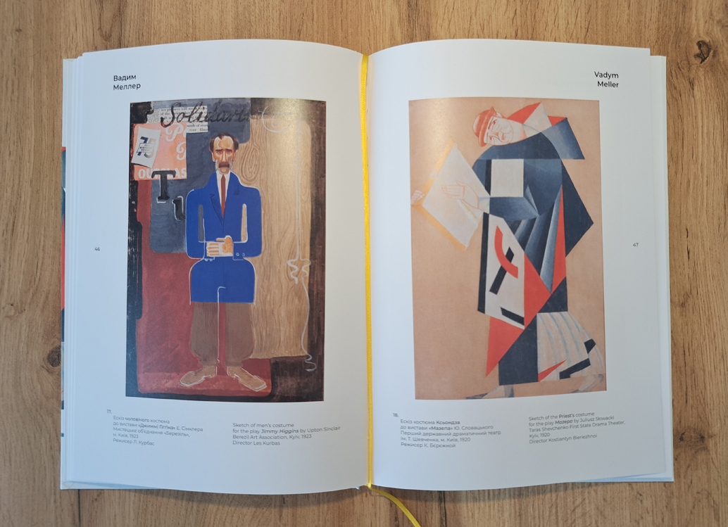 У виданні представлені роботи 22 художників різних поколінь та мистецьких кіл: як визнаних класиків української сценографії, так і сучасних художників, що працюють із театральним костюмом вже у XXI столітті. Серед них праці Олександри Екстер, Василя Кричевського, Анатолія Петрицького, Вадима Меллера, Бориса Косарева й Олександра Хвостенка-Хвостова.