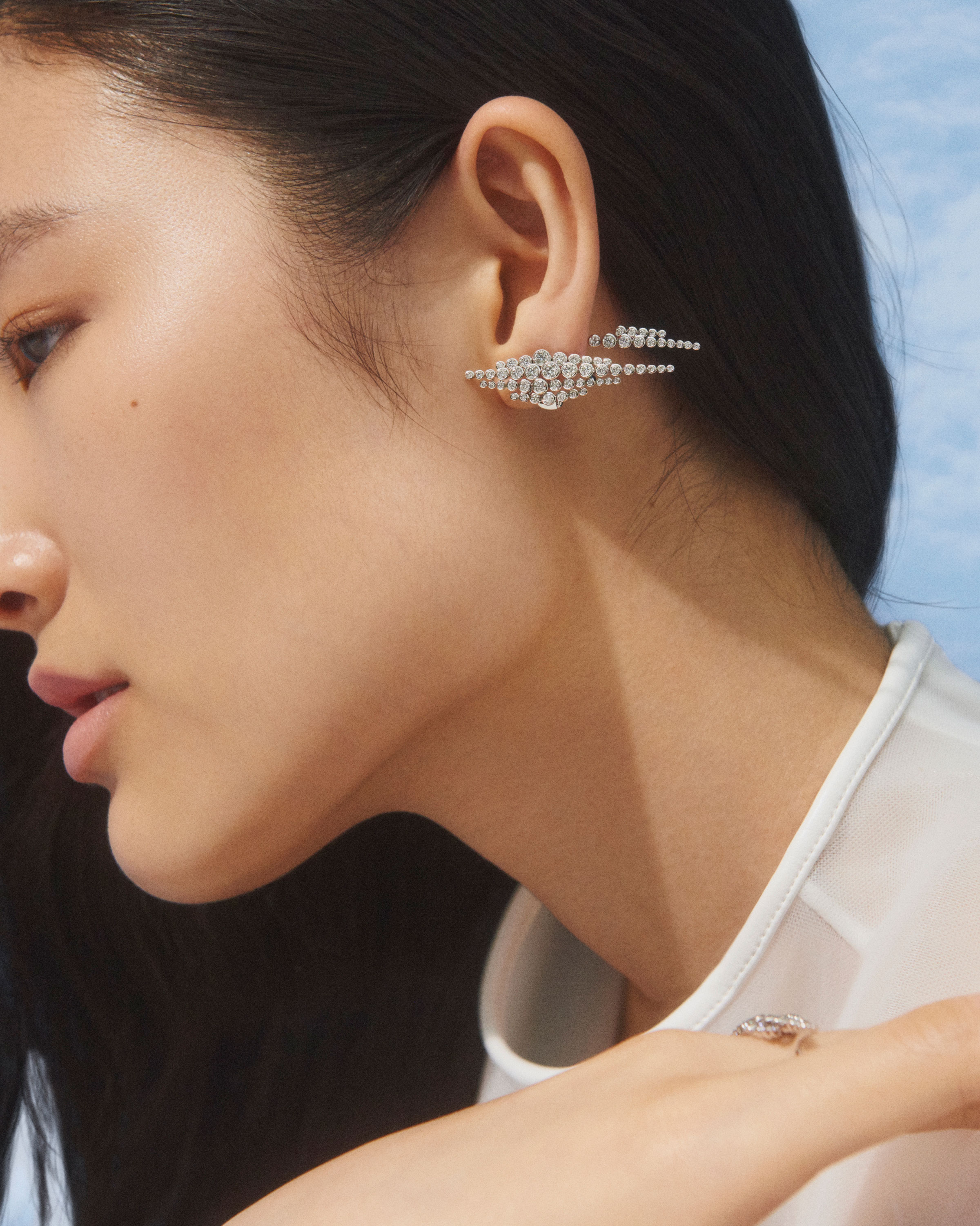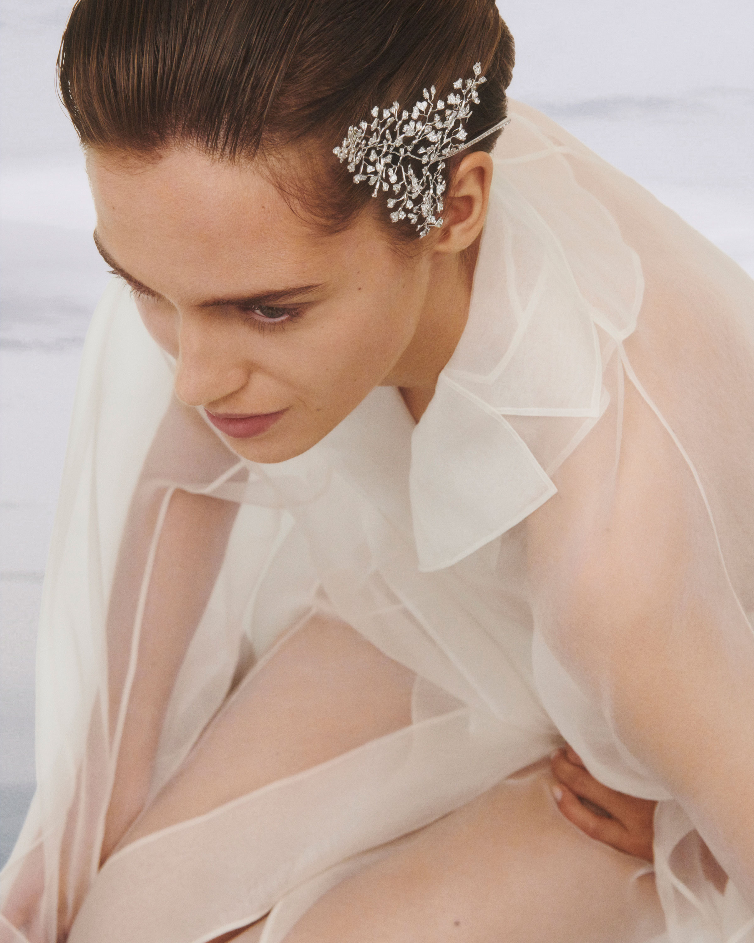 В коллекцию вошли серьги в виде капель дождя и облаков, колье с горным хрусталем изумрудной огранки, напоминающим очертания Вандомской площади, кольцо, браслет и серьги Avant le Frisson, которые вдохновлены одуванчиками и созданы с использованием титановых нитей не толще волоса. Одуванчик нашел свое воплощение и в роскошном чокере, где каждая титановая нить увенчана бриллиантовой капелькой. Его можно носить и как тиару.
