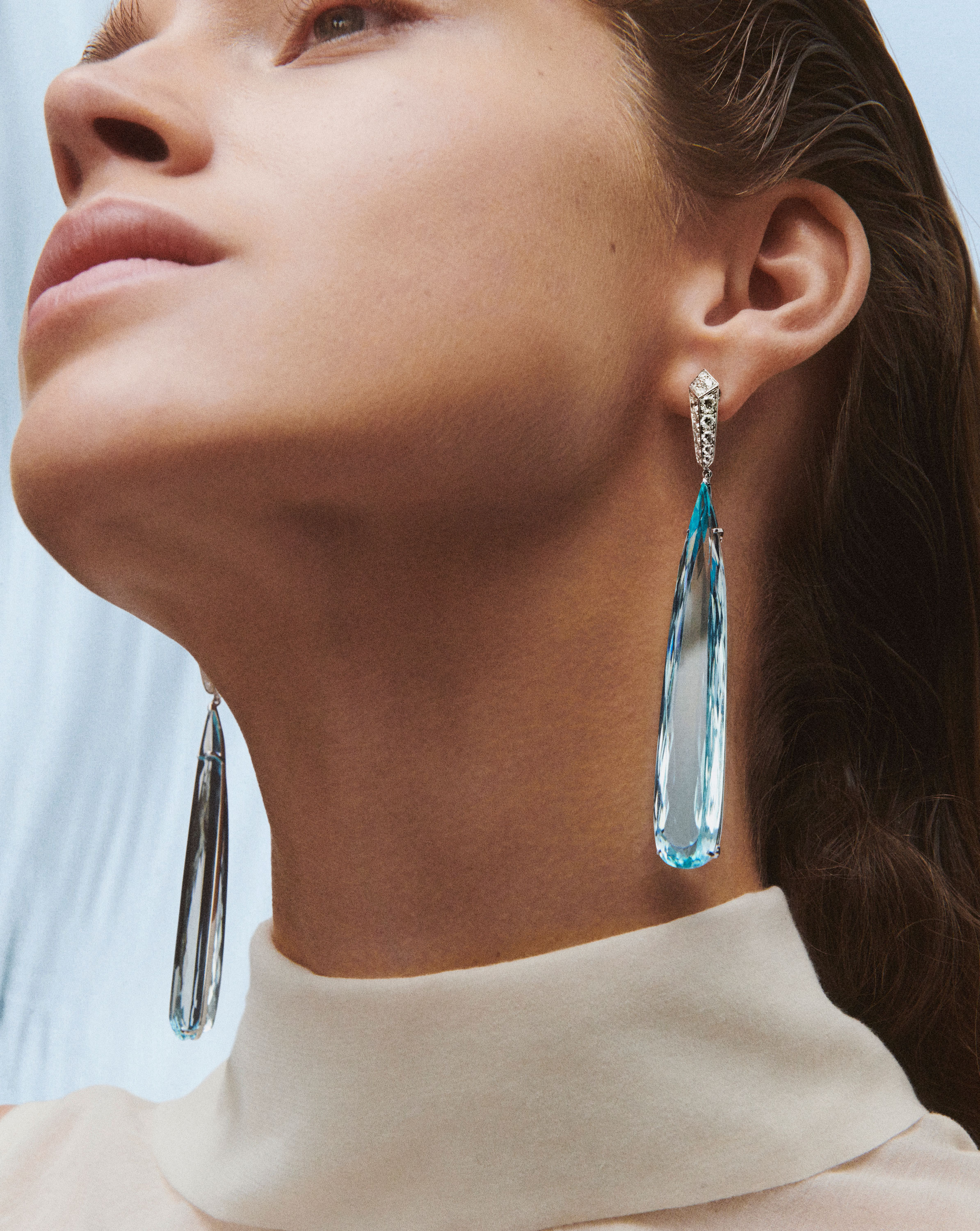 Например, для создания колье Goutte de Ciel ювелирам дома потребовалось 2 года поисков. В результате Boucheron использовали загадочный материал, состоящий из 99,8% воздуха и диоксида кремния, который NASA использует в космосе для сбора звездной пыли.