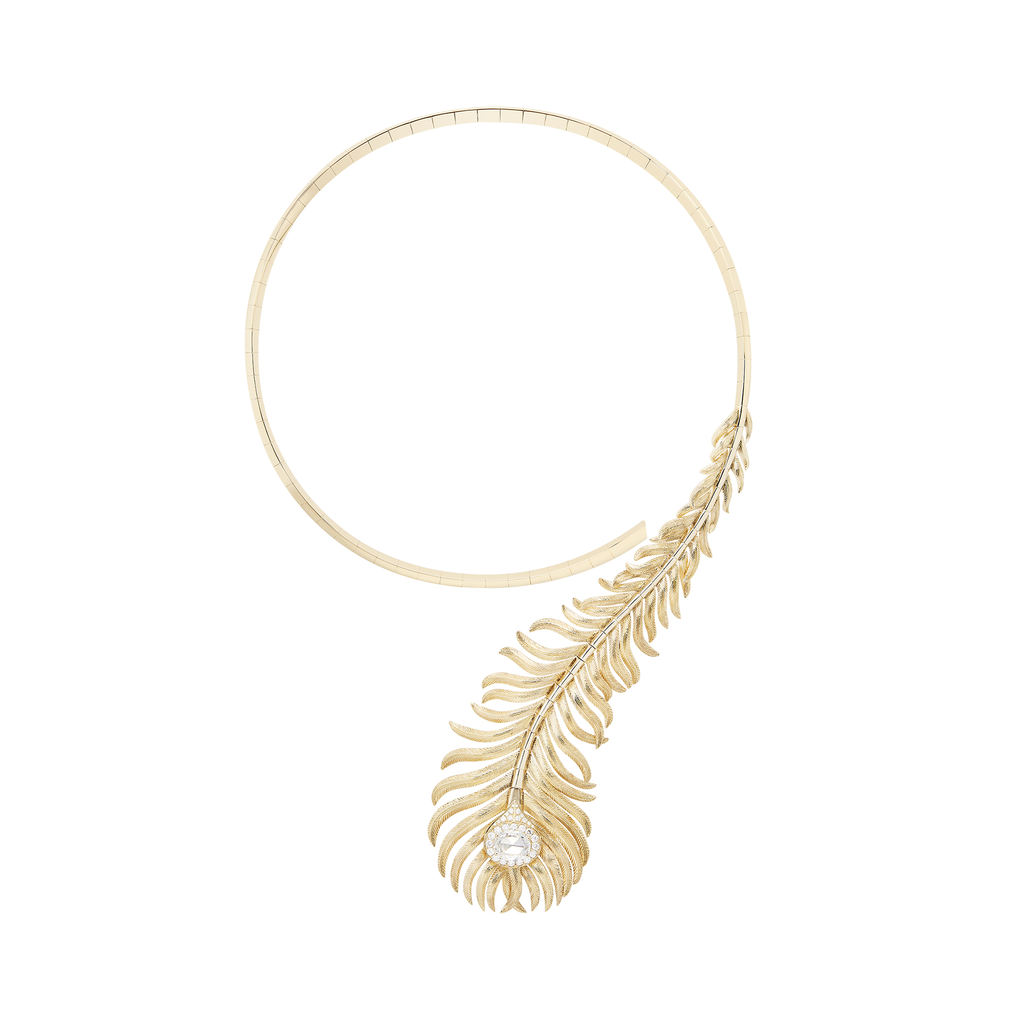160 лет назад Фредерик Бушерон и его ювелирный мастер не могли оторвать глаз от красоты пера павлина, завороженно рассматривая его со всех сторон. Так у них родилась идея гибкого колье в свободной и воздушной форме знака вопроса, которая отражает красоту и утонченность пера павлина. Этот мотив – символ жизни и легкости – вскоре стал культовым для дома, воспевая креативность и мастерство ювелиров Boucheron.