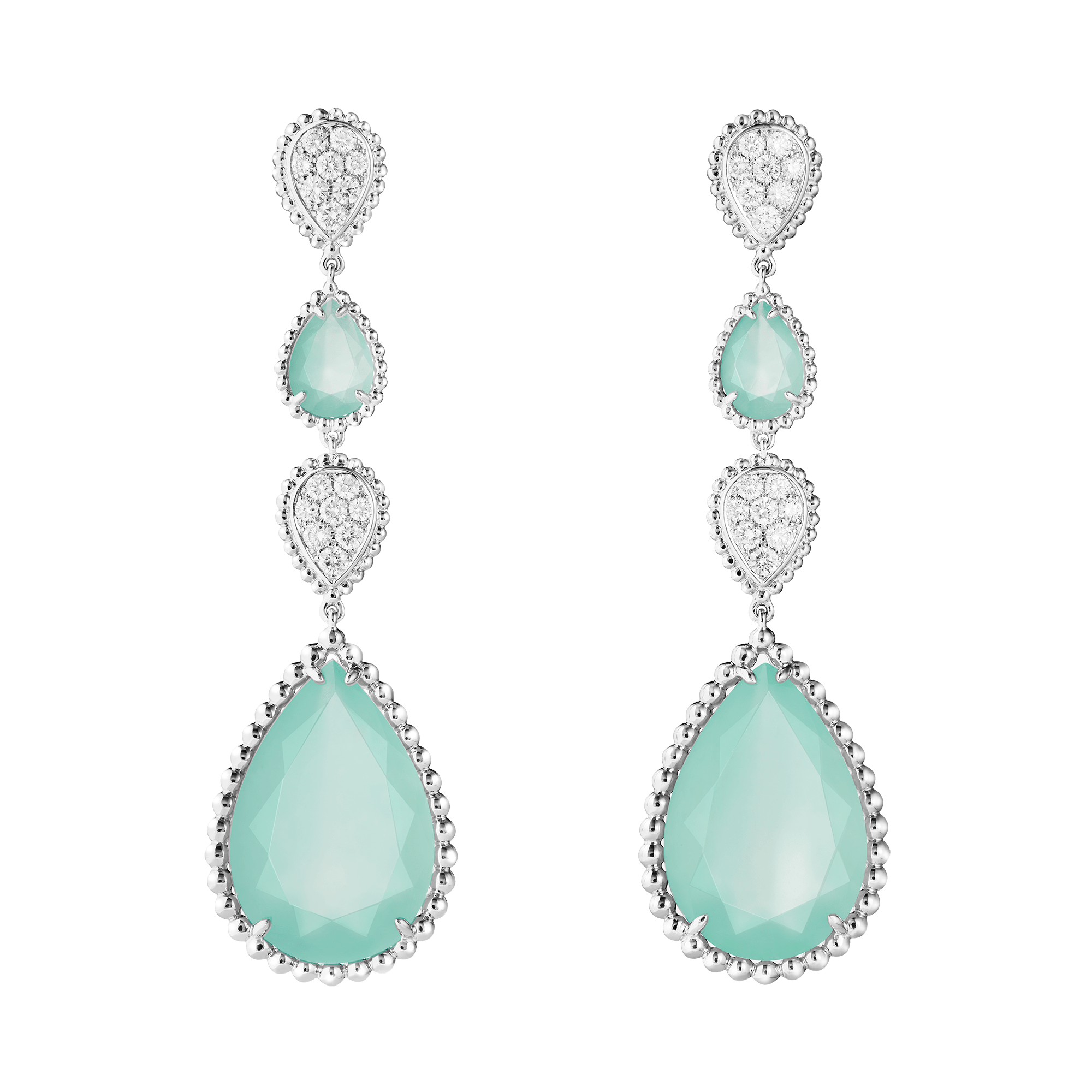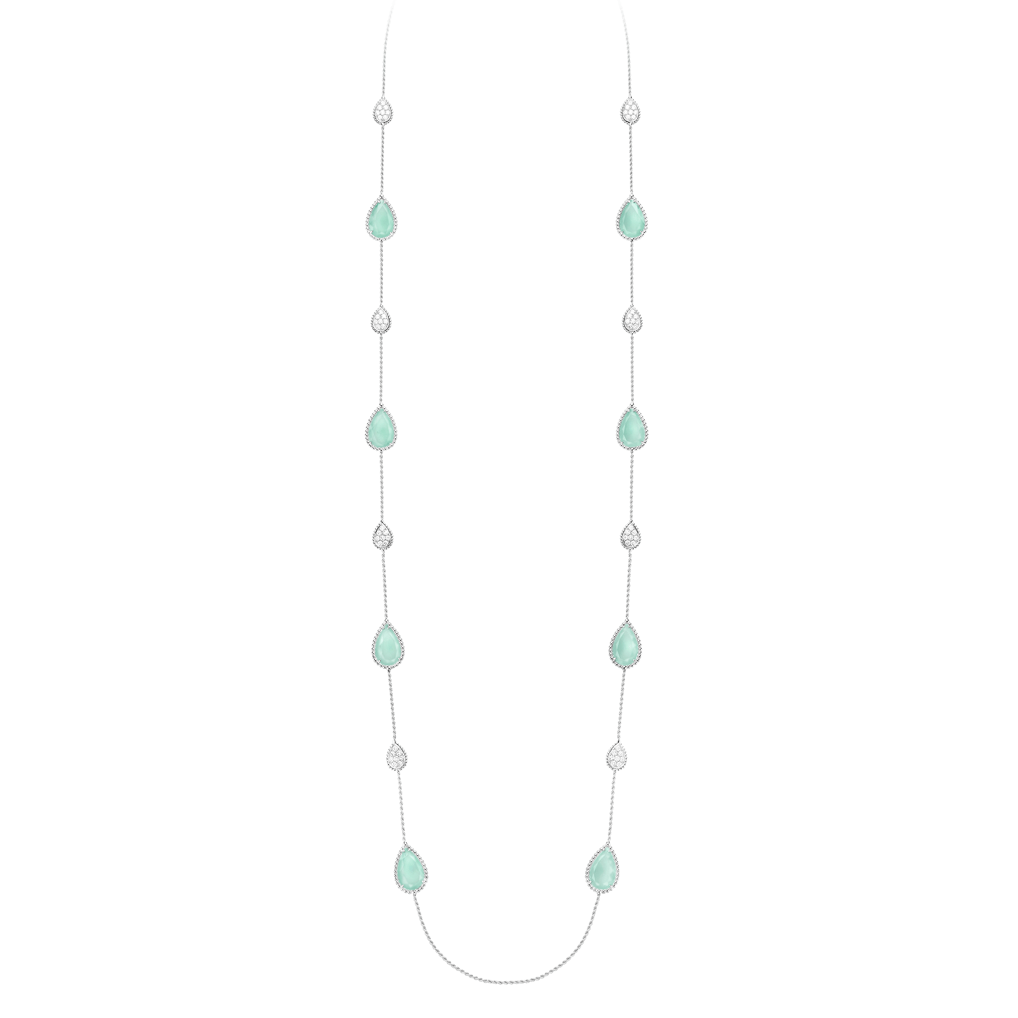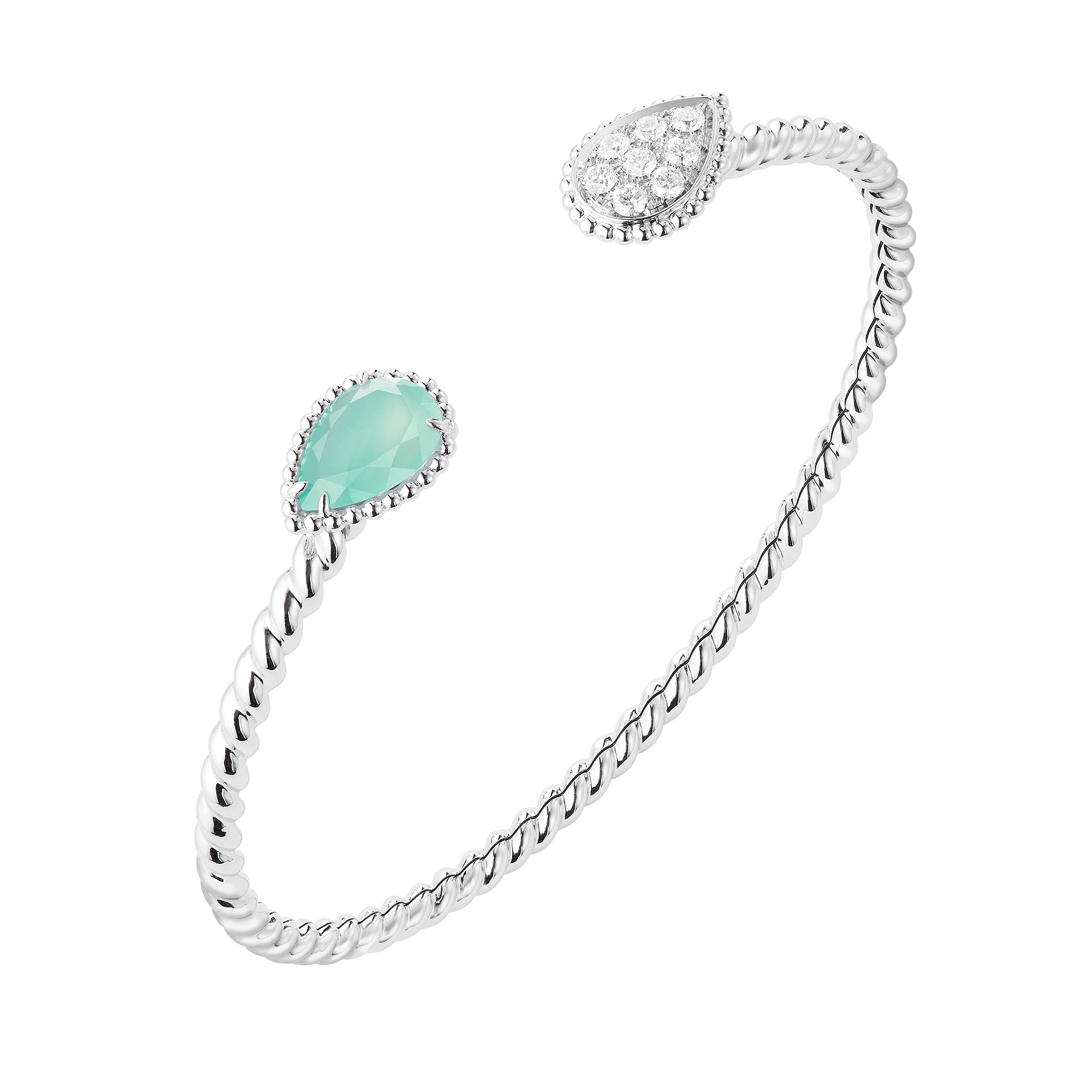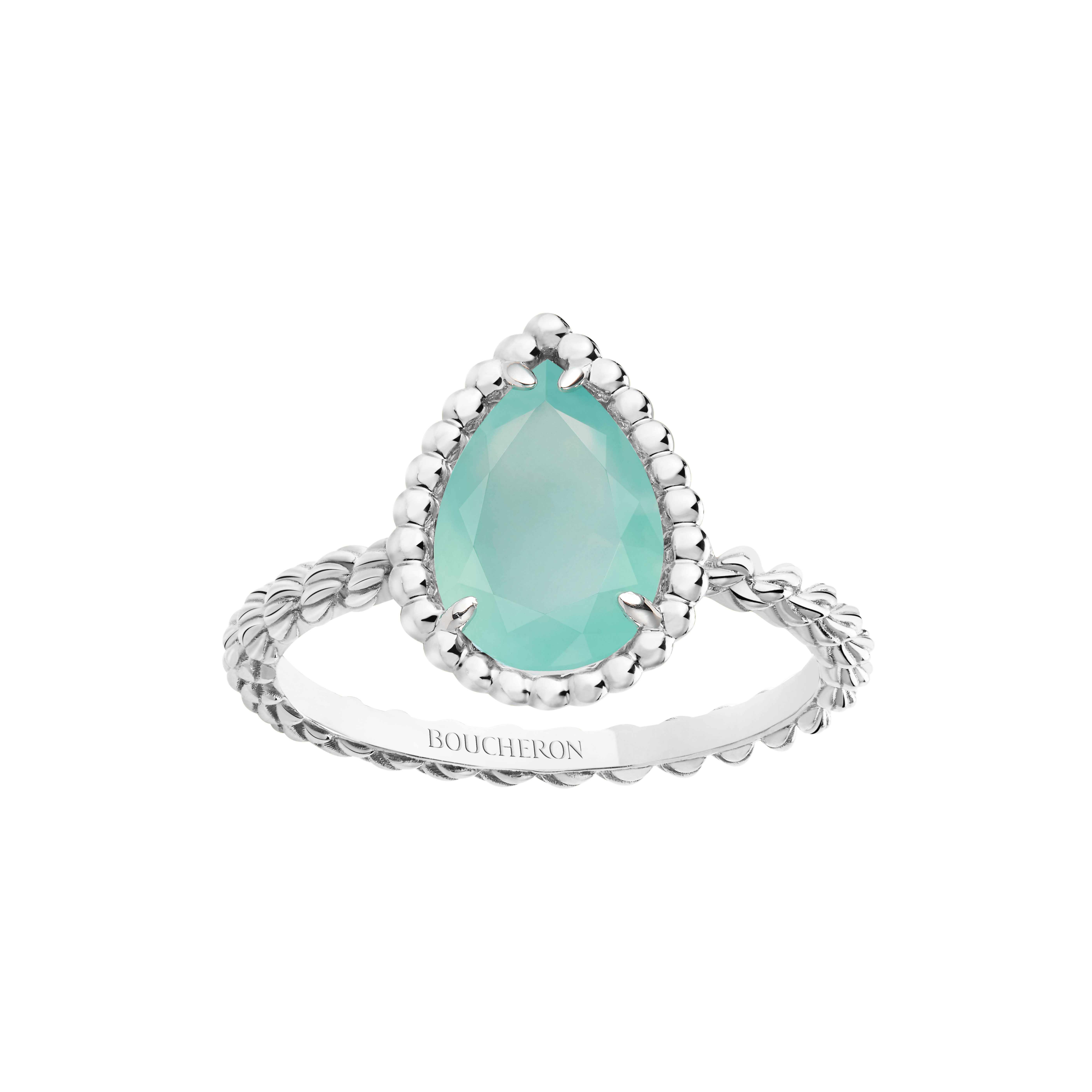 Boucheron впервые в истории ювелирного искусства представили коллекцию с аквапразом. Полупрозрачный натуральный камень, впервые обнаруженный в 2015 году в Зимбабве, был назван в честь его сине-зеленого цвета. украшения вошли в коллекцию Serpent Bohème.