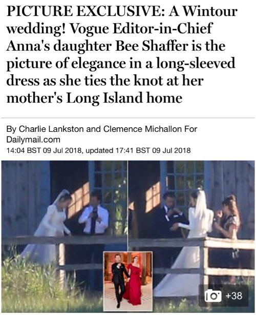 В эту субботу в строжайшей секретности состоялась свадьба 30-летней дочери главного редактора американского Vogue Би Шаффер и 36-летнего сына бывшего главного редактора Vogue Italia Франческо Карроззини.