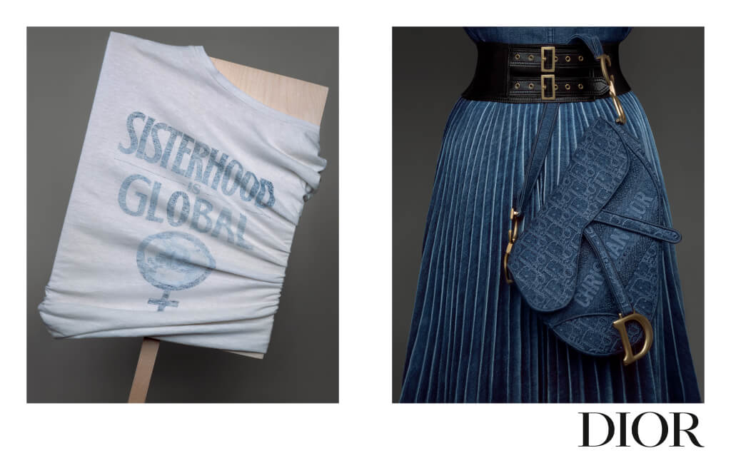 Известная своим нестандартным подходом к работе, Бриджит фотографировала крупным планом футболку Sisterhood Is Global, символизирующую протест, черный кожаный пояс, надетый на синее гофрированное платье.