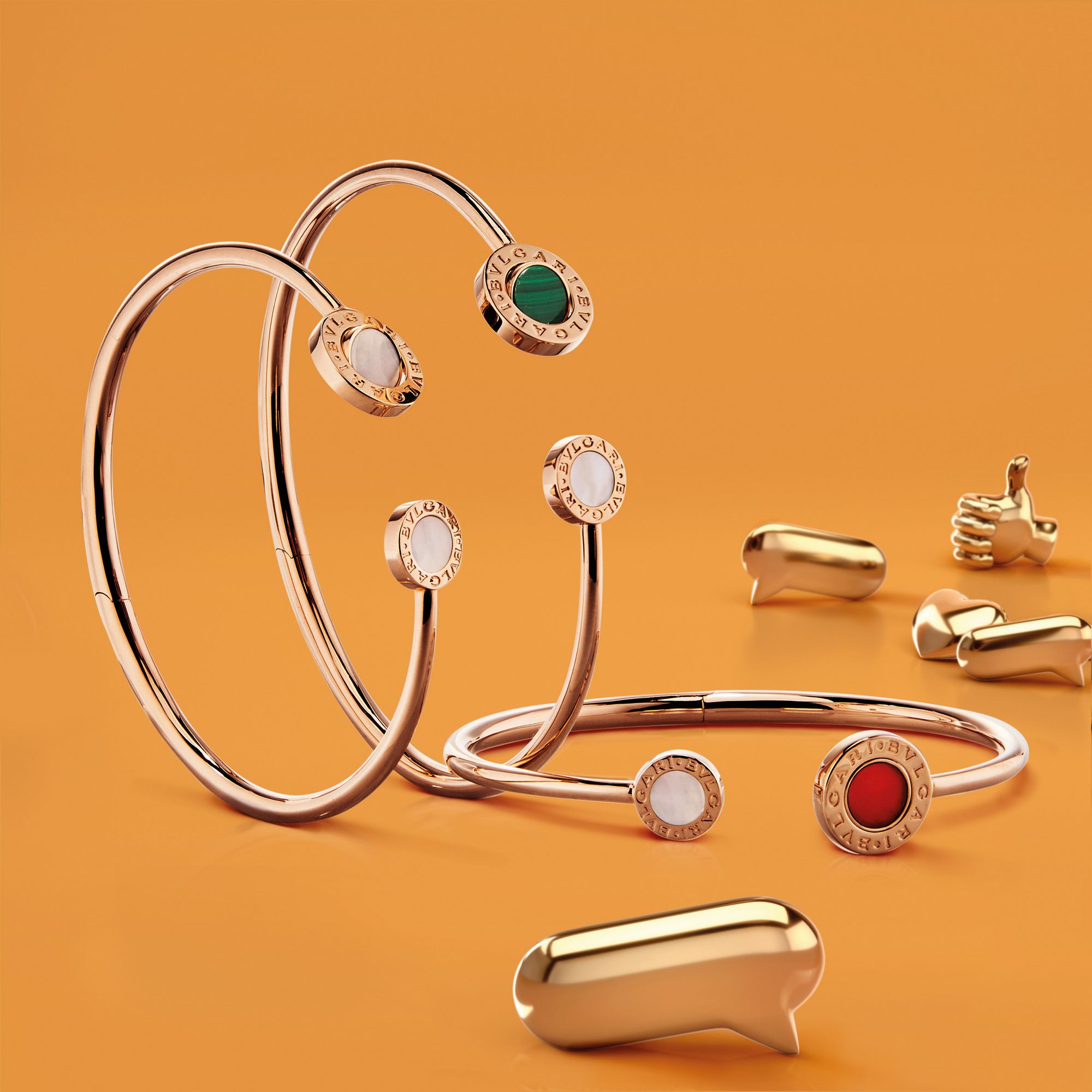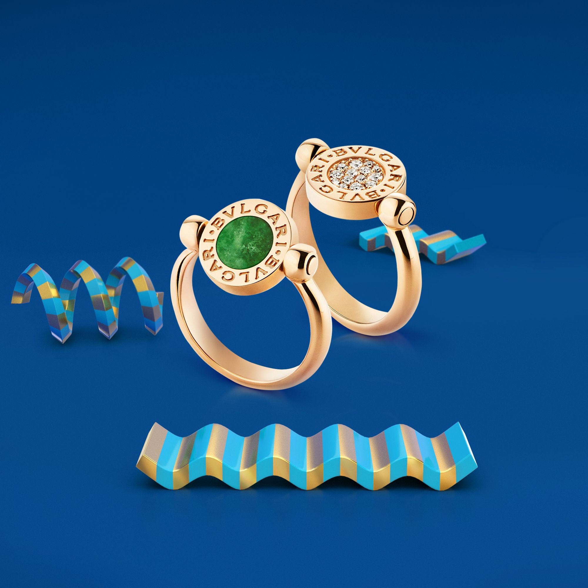 Новое воплощение BVLGARI-BVLGARI 2018 года бренд считает самым озорным и игривым, ведь теперь акцент в нем делается однозначно на цвет, который входит в ДНК ювелирного дома, а также напоминает о поп-арте 1970-х-80-ых годов. Украшения BVLGARI-BVLGARI Classic из 18-каратного розового золота и впервые из непрозрачных камней предлагают множество вариантов индивидуализации образа и идеально подходят для молодых женщин, которые играют не по правилам. Драгоценности словно предлагают смешивать себя, сочетать несочетаемое и создавать неповторимые образы с помощью пяти различных непарных сережек, четырех незамкнутых браслетов и уникального вращающегося кольца.