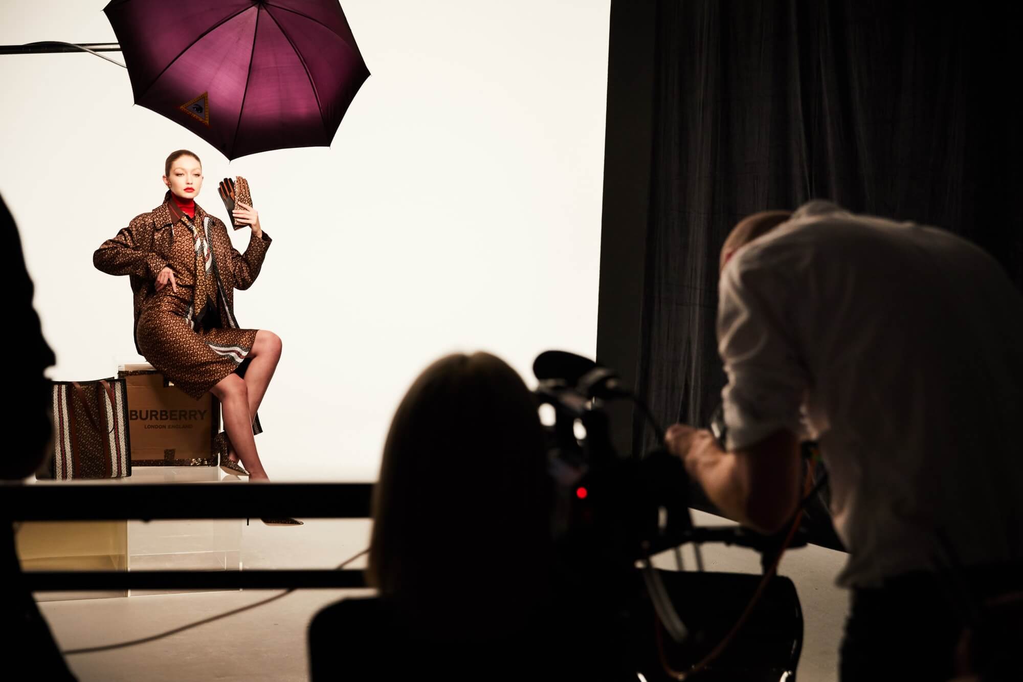 Для рекламной кампании Burberry пригласили известную модель Джиджи Хадид, которая примерила на себя четыре разных образа: девушки, леди, мальчика и джентльмена.