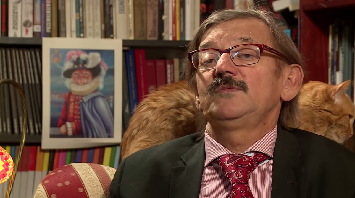 Датская новостная передача Nieuwsuur брала интервью у известного в Польше историка-политолога Ежи Таргальского, и, казалось бы, ничего не предвещало беды, но тут на плечи академика забрался его кот по кличке Лисио.