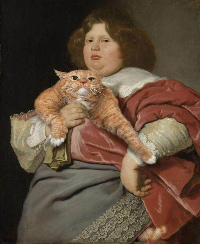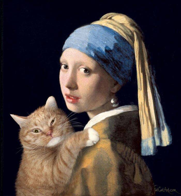Умилительное искусство: Художница добавляет свою кошку на знаменитые картины