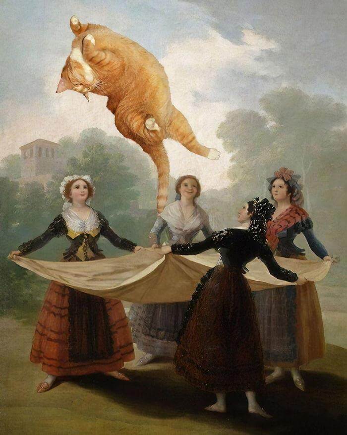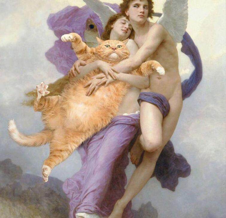 Главная муза художницы Светланы Петровой — ее рыжая кошка по имени Заратустра. Пушистое животное появляется на шедеврах истории искусства, привнося в них новый смысл и умиление. Кошка не боится разрушать композиции классиков, но, как это свойственно котам, ей на это абсолютно все равно.