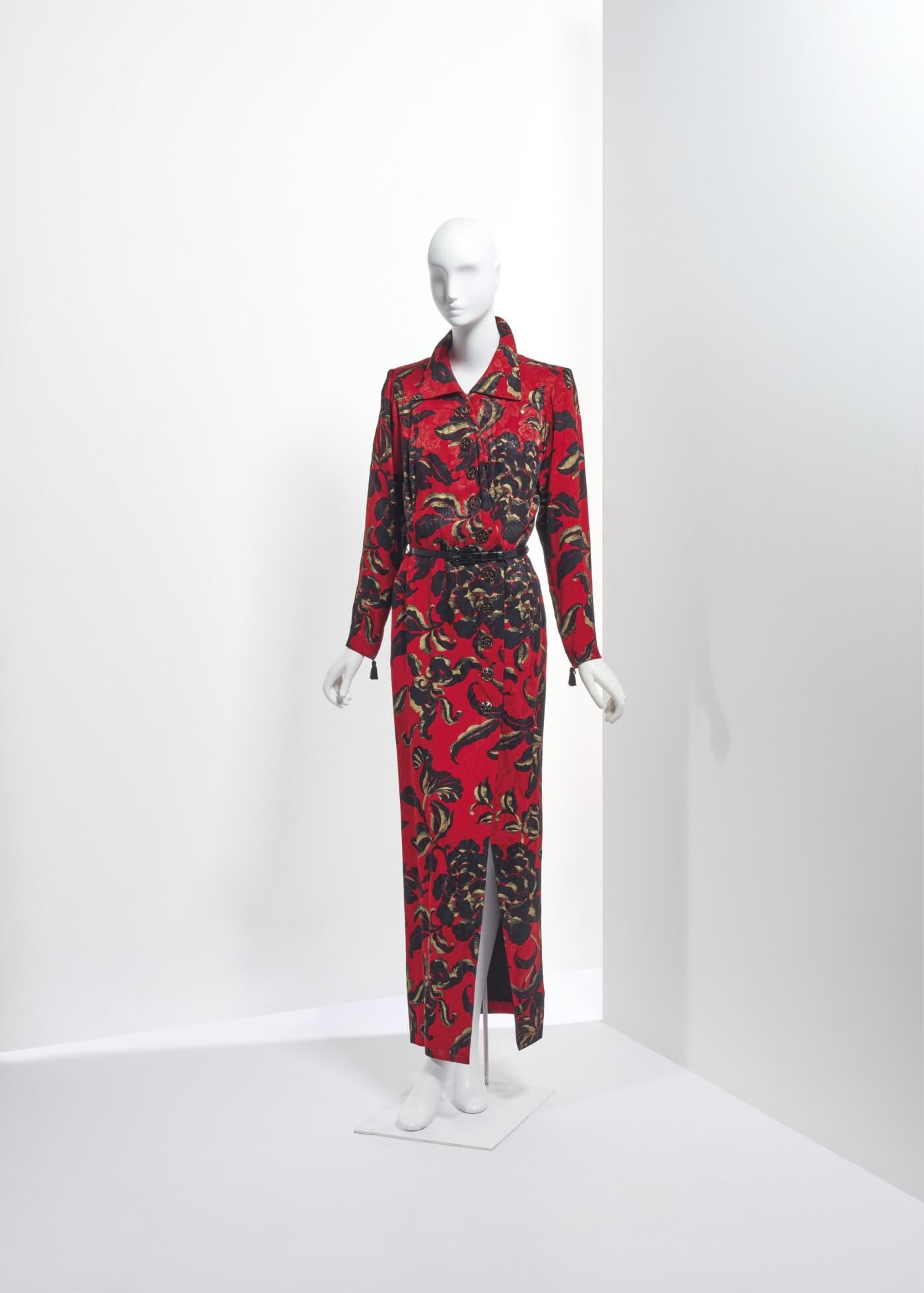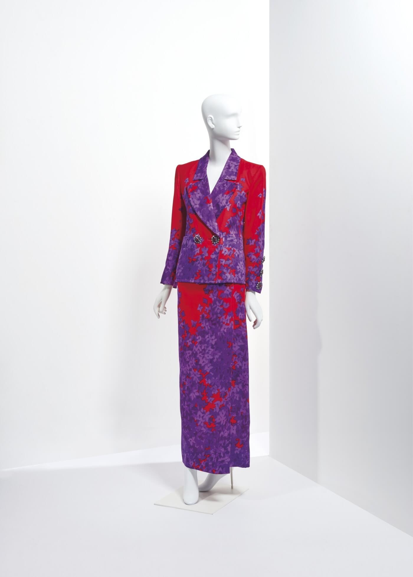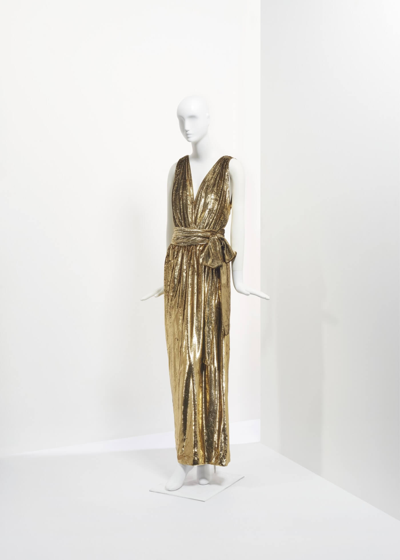 Среди лотов — смокинг из кутюрной коллекции 1982 года, драпированное платье из люрекса, которое Катрин носила на балу Met Gala 1983 года, платье с розовыми перьями 1992 года, а также вечерние наряды 70-х годов.