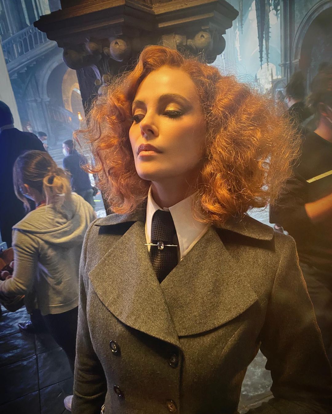 Шарлиз Терон опубликовала в своем аккаунте в инстаграме первые кадры из предстоящего фильма "Школа добра и зла". На фото со съемок актриса предстала в новом образе – рыжеволосой злодейки по имени леди Лессо.