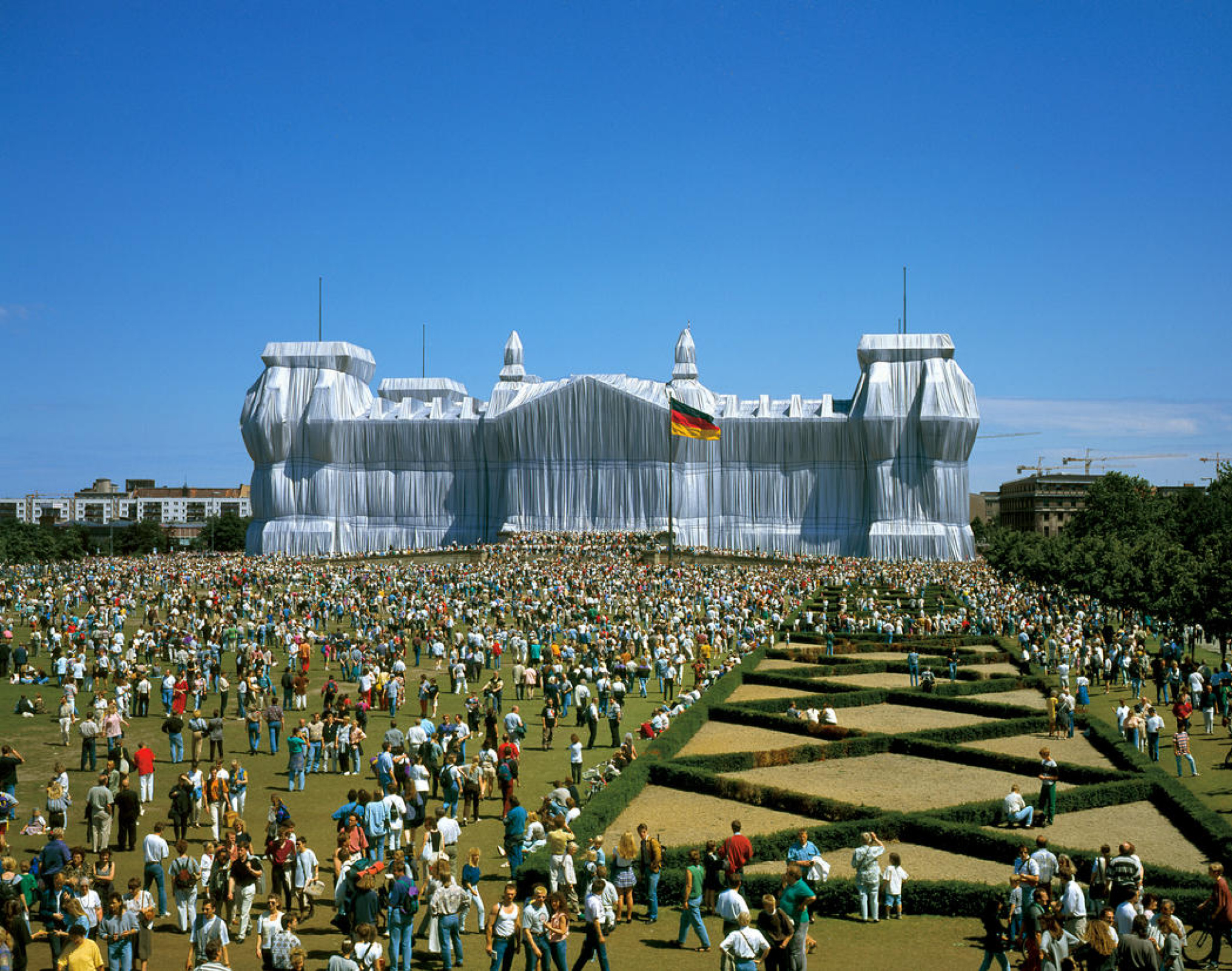 Работа Христо "Обернутый Рейхстаг" была создана 23 июня 1995 года. Для упаковки здания понадобилось 100 тысяч квадратных метров серебристой ткани, которую закрепили при помощи 8-ми километров каната. Когда дул ветер, ткань шевелилась, создавая иллюзию живого объекта. По задумке художника, всю работу по креплению ткани на Рейхстаге должны были сделать профессиональные альпинисты, не привлекая ни одного крана.