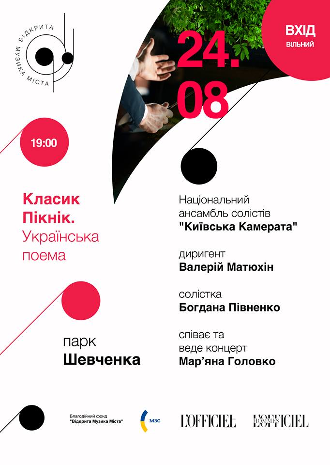 Финальный летний концерт "Классик Пикник" состоится в парке имени Тараса Шевченко в День независимости Украины, 24 августа, в 19:00. Во время него музыканты вернут слушателей из “путешествия” по разным странам: после предыдущих выступлений, посвященных Франции, Италии, Австрии и Германии, вы услышите произведения украинских композиторов.