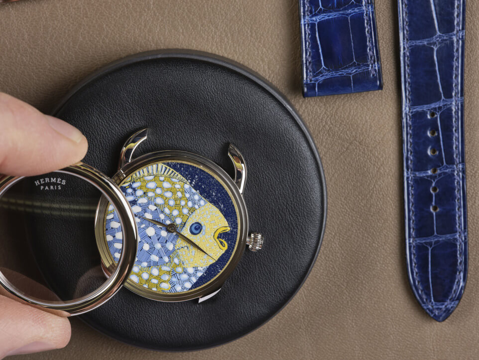 Hermès показали модель часов с ограниченным тиражом: всего 6 экземпляров в мире. На их изготовление уходит месяц работы, рисунок выполняется вручную.