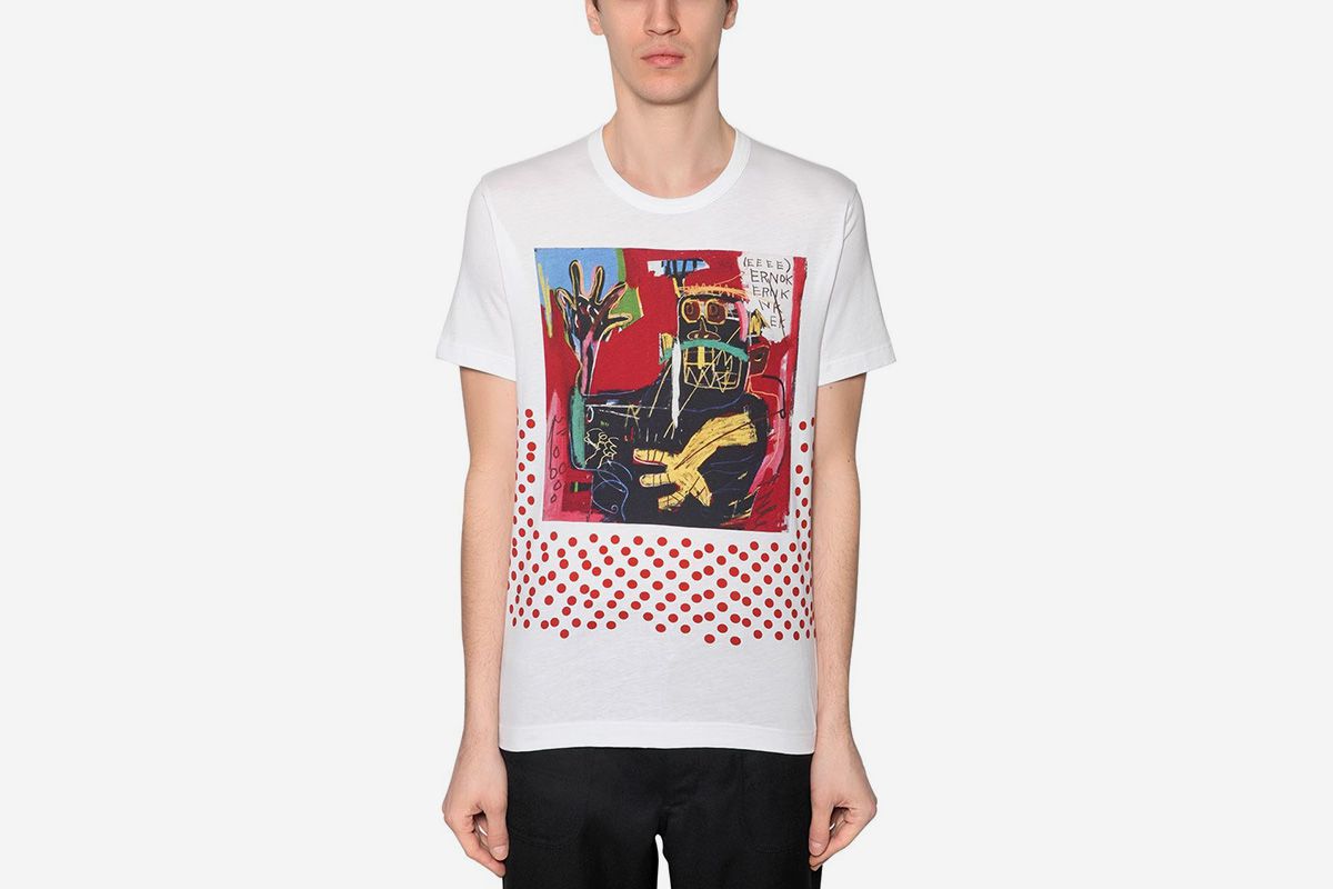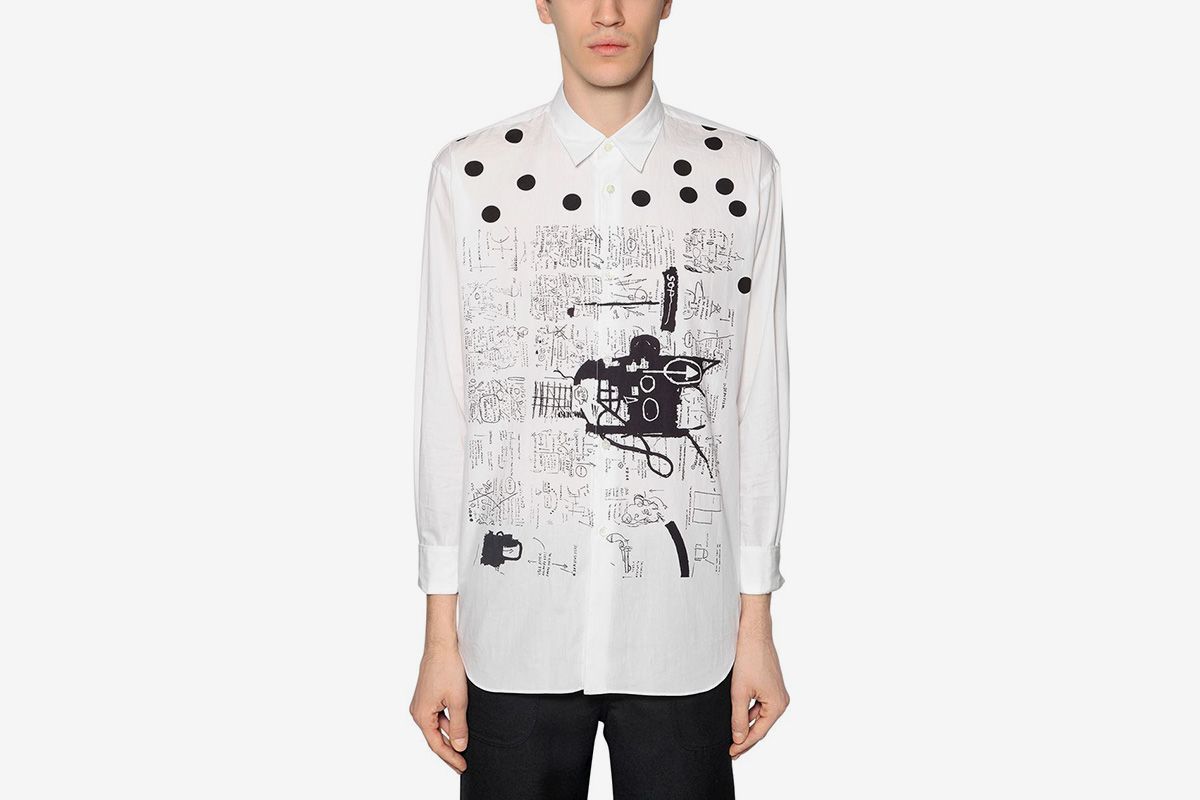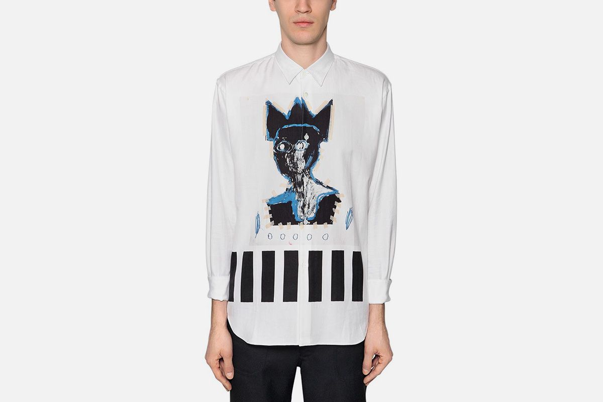 Японский бренд Comme des Garçons выпустил мужские футболки и рубашки, украшенные принтами по мотивам работ уличного художника и неоэкспрессиониста Жан-Мишеля Баскии. Впервые они были представлены на показе актуальной осенне-зимней Comme des Garçons Shirt.
