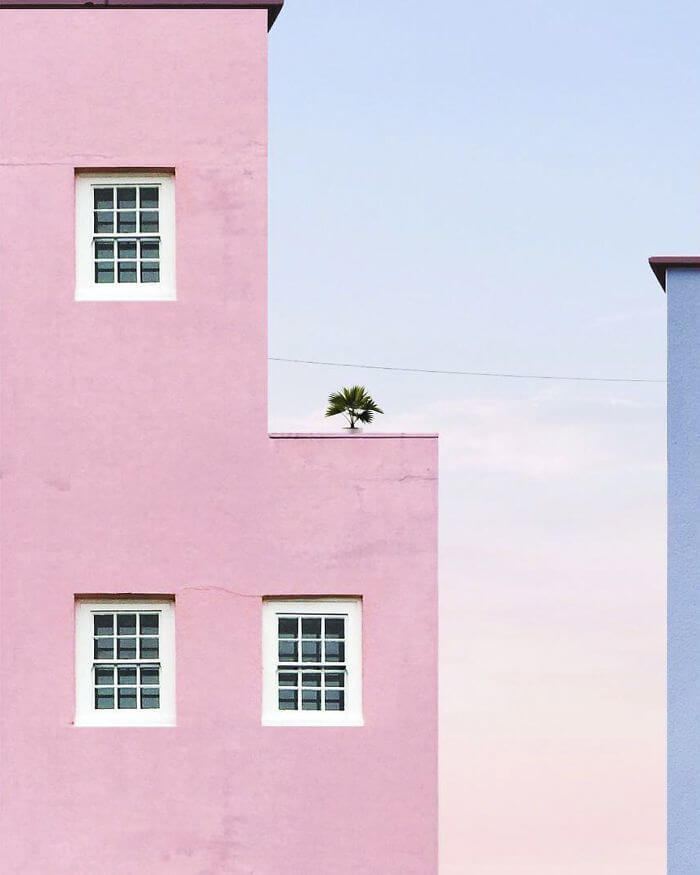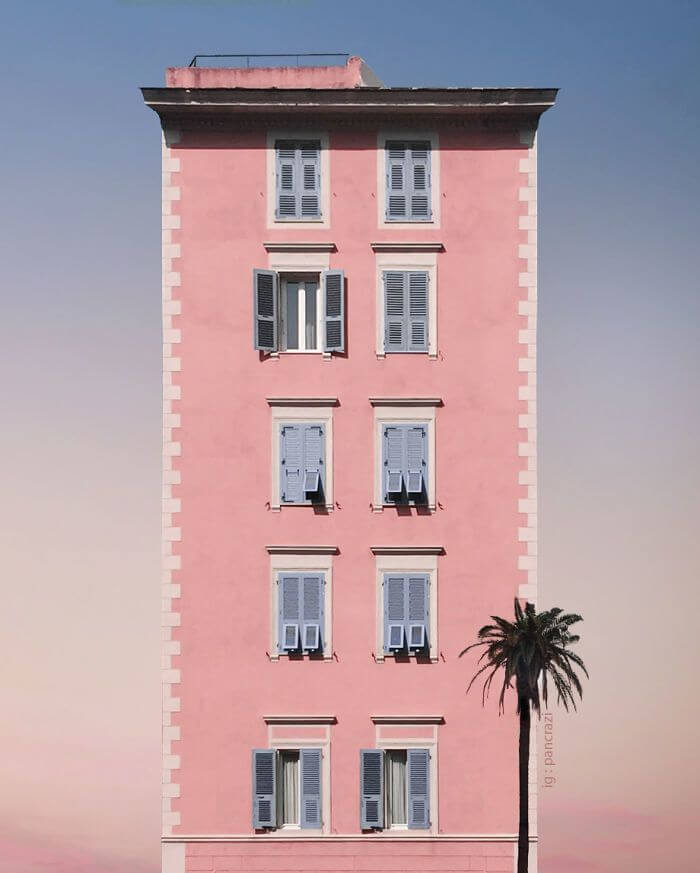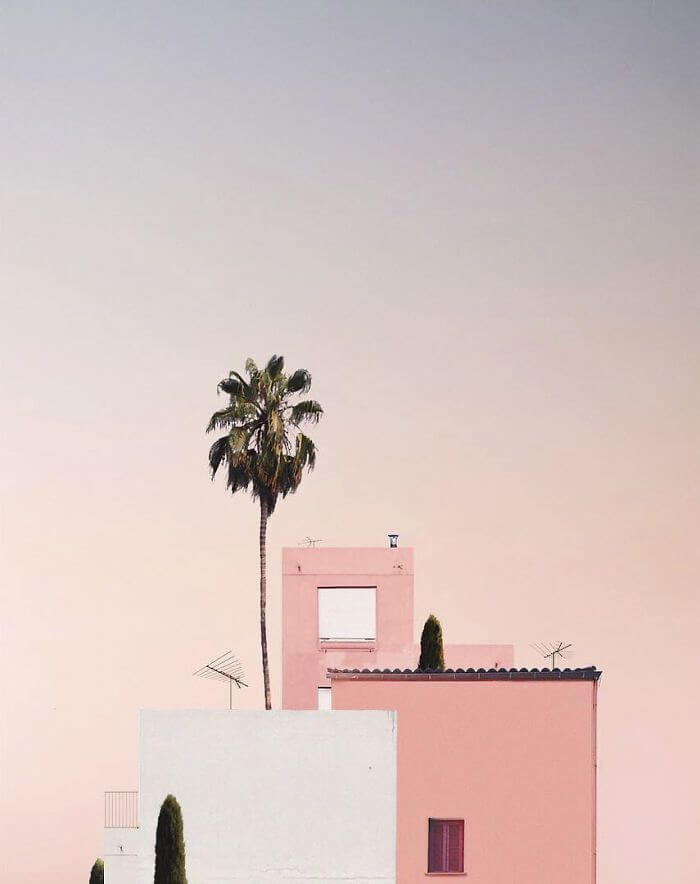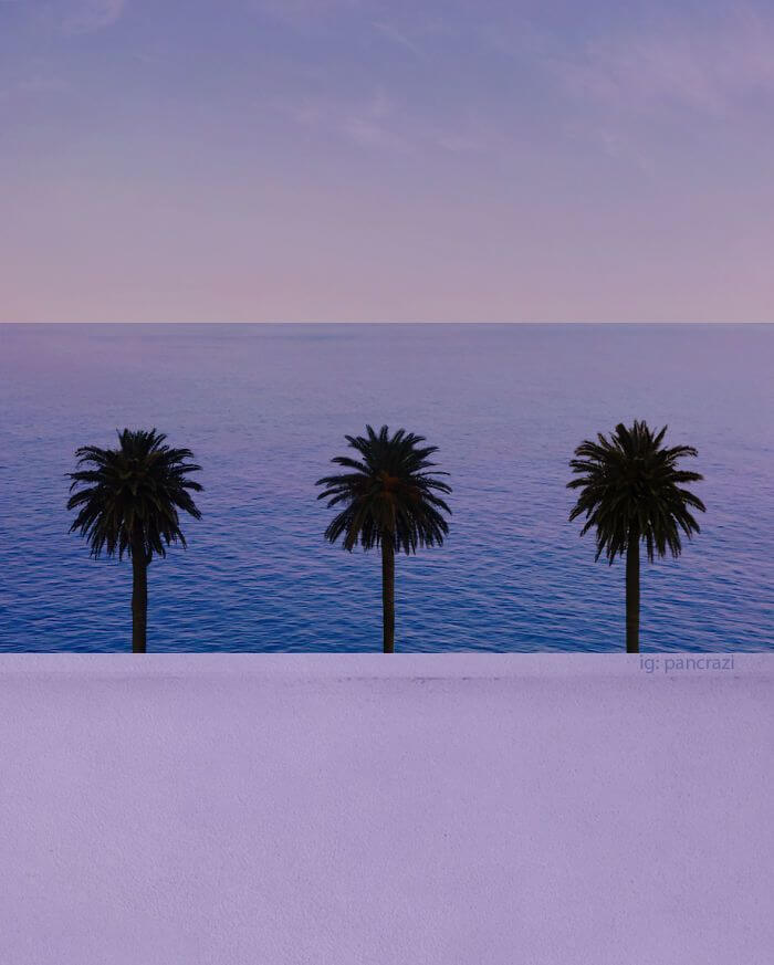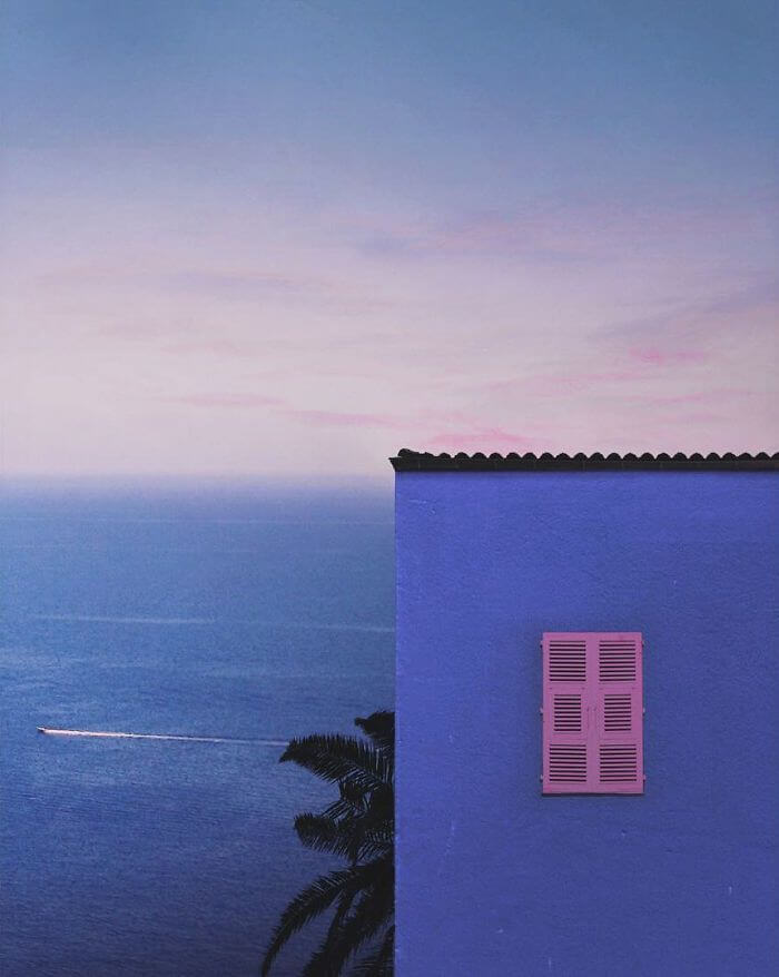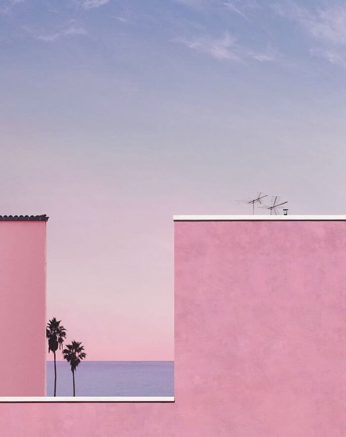 Фотограф Андриа Дариус Панкраси родился и вырос на французском острове Корсика, где на закате небо окрашивается в розовые, фиолетовые и голубые цвета. Сейчас он живет и работает в Лондоне, но каждый раз, приезжая на родину, делает сюрреалистичные снимки побережья, неба и домов пастельных тонов. Фотограф работает в стиле минимализма.