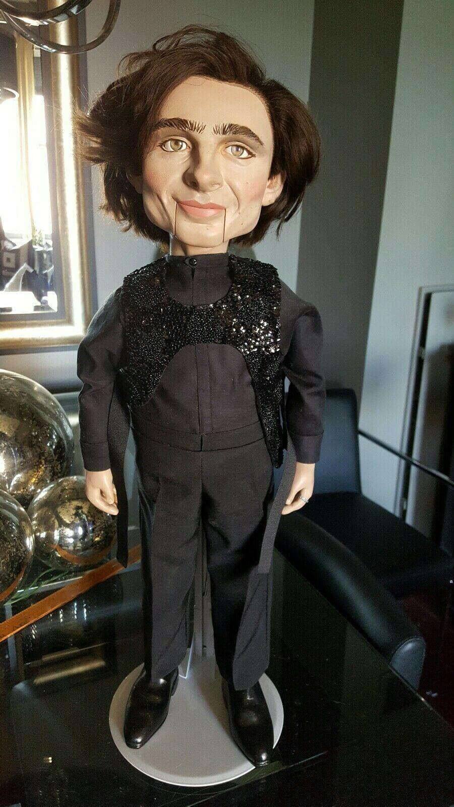 Продавец рассказывает, что фигурка чревовещателя Тимоти выполнена вручную, а одежда сделана под заказ. Кукла, высотой почти 70 сантиметров, станет хорошим подарком для любого случая – от baby-shower до дня рождения. Автор воссоздал наряд от Louis Vuitton, в котором Шаламе появился на церемонии “Золотой глобус”.