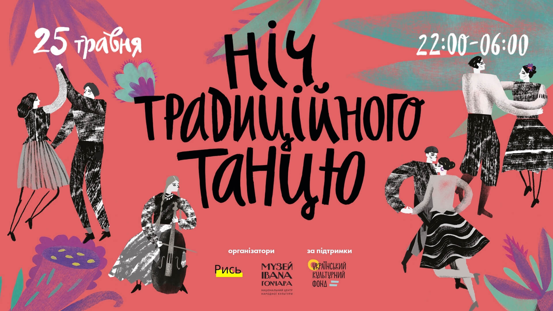 “Ніч традиційного танцю просто неба” пройде 25 травня з 22:00 до 6:00 у подвір‘ї Музею Івана Гончара (вул. Лаврська, 19). Квитки вже є у продажі.