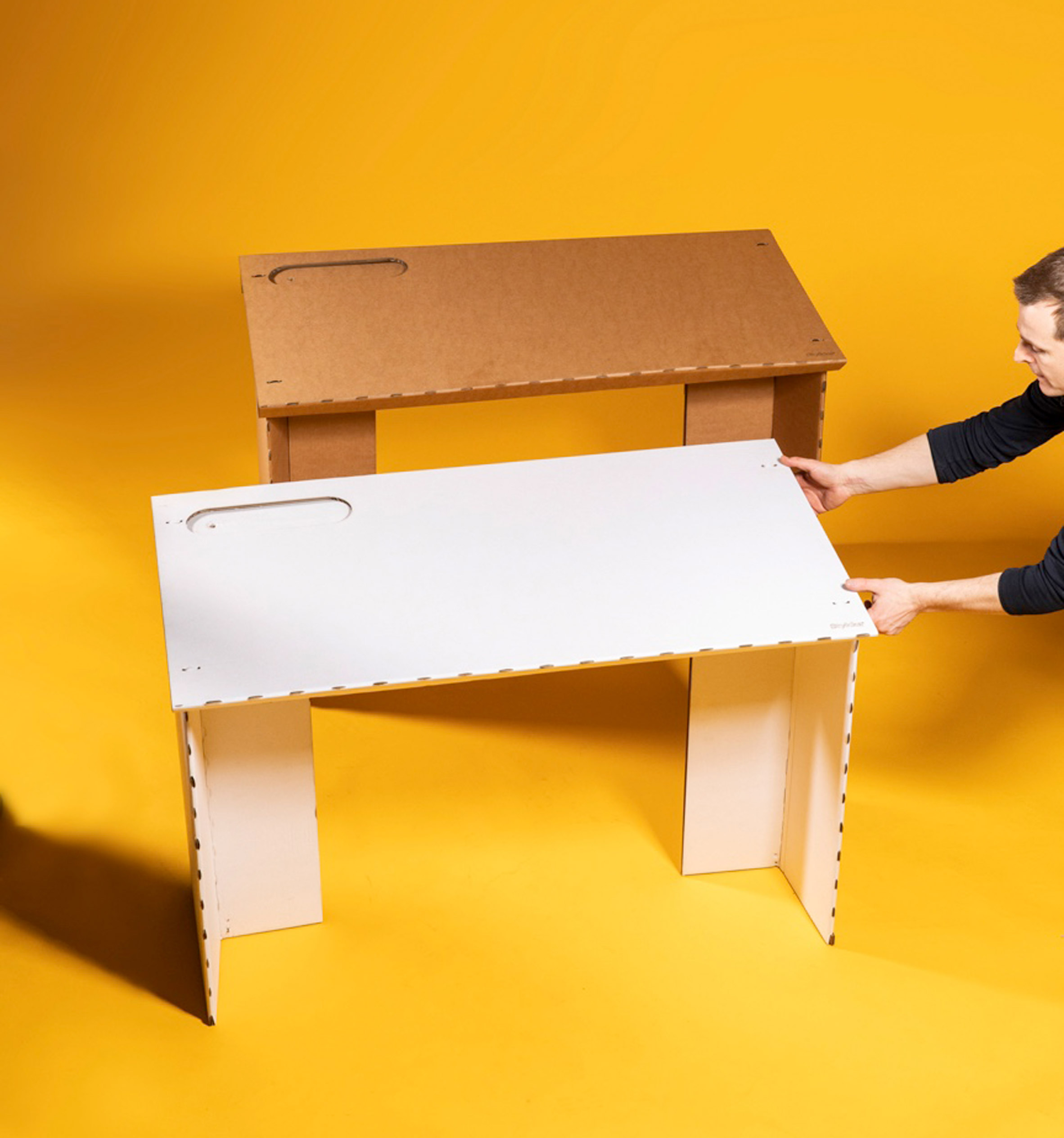 Идея создать картонный стол пришла Ярлу и его коллегам после того, как в Дании объявили карантин и им пришлось работать удалённо. На воплощение идеи в реальность у команды ушло всего 24 часа.