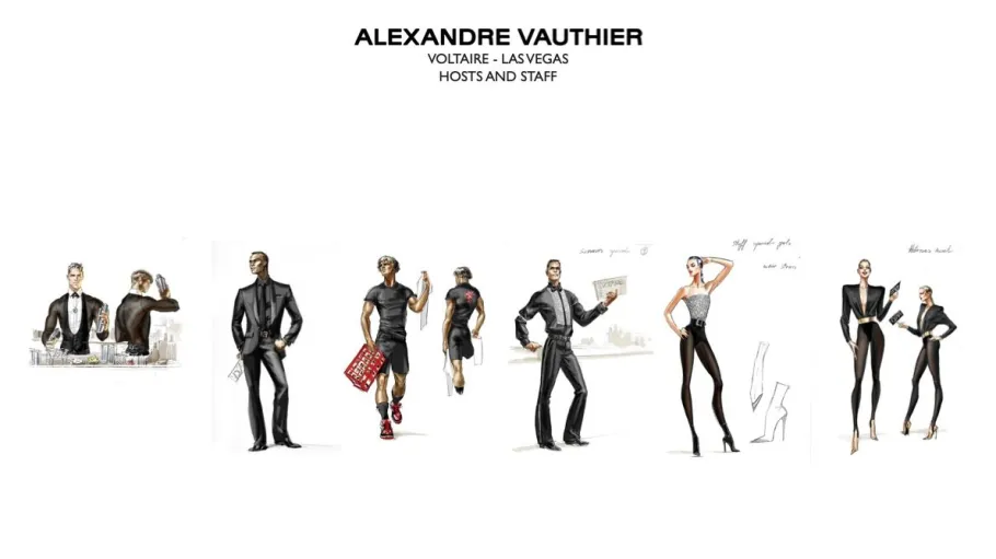 Персонал нічного клубу також по-особливому одягнений. Жінки носять прикрашені стразами бюстьє або боді з графічними плечима в поєднанні з легінсами зі штрипками. Чоловіки ж – класичні смокінги з блискучими нагрудниками та краватками.