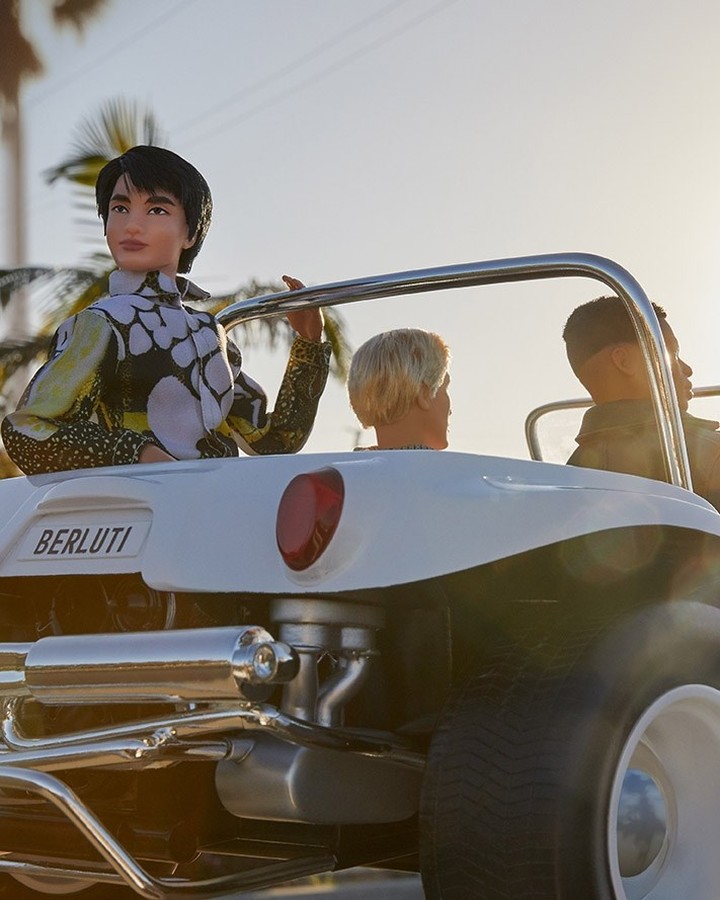 Креативный директор Berluti Крис Ван Аш создал три собственные версии Кена в честь 60-летия куклы. Одежда для Кена была адаптирована из коллекции Berluti сезона весна-лето – 2021: миниатюрная версия коричневой кожаной куртки с шелковой рубашкой, брюки, пояс, кроссовки и туфли из телячьей кожи, двубортный костюм Prince of Wales с логотипом Ken & Berluti. В коллекцию вошла миниатюра фирменного клатча Nino, обновленная версия пляжного багги Berluti.