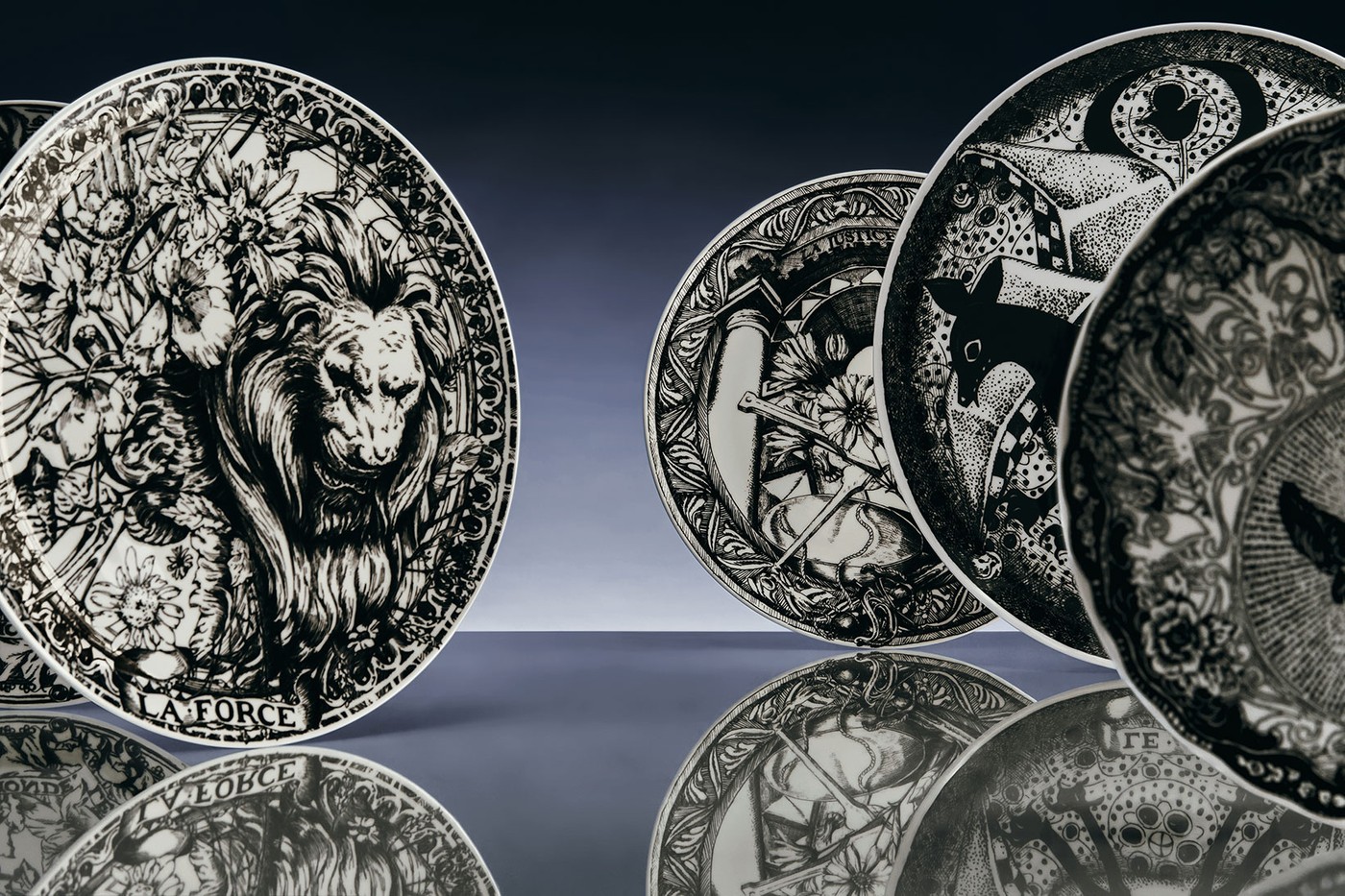 Коллекцию декора для дома создали Мария Грация Кьюри и римский художник Пьетро Руффо. Изделия украшены черно-белыми иллюстрациями, вдохновленными элементами карт Таро. Эскизы человеческих фигур нанесены на декоративные тарелки и блюда из лиможского фарфора. На подушках вышиты изображения звезд.