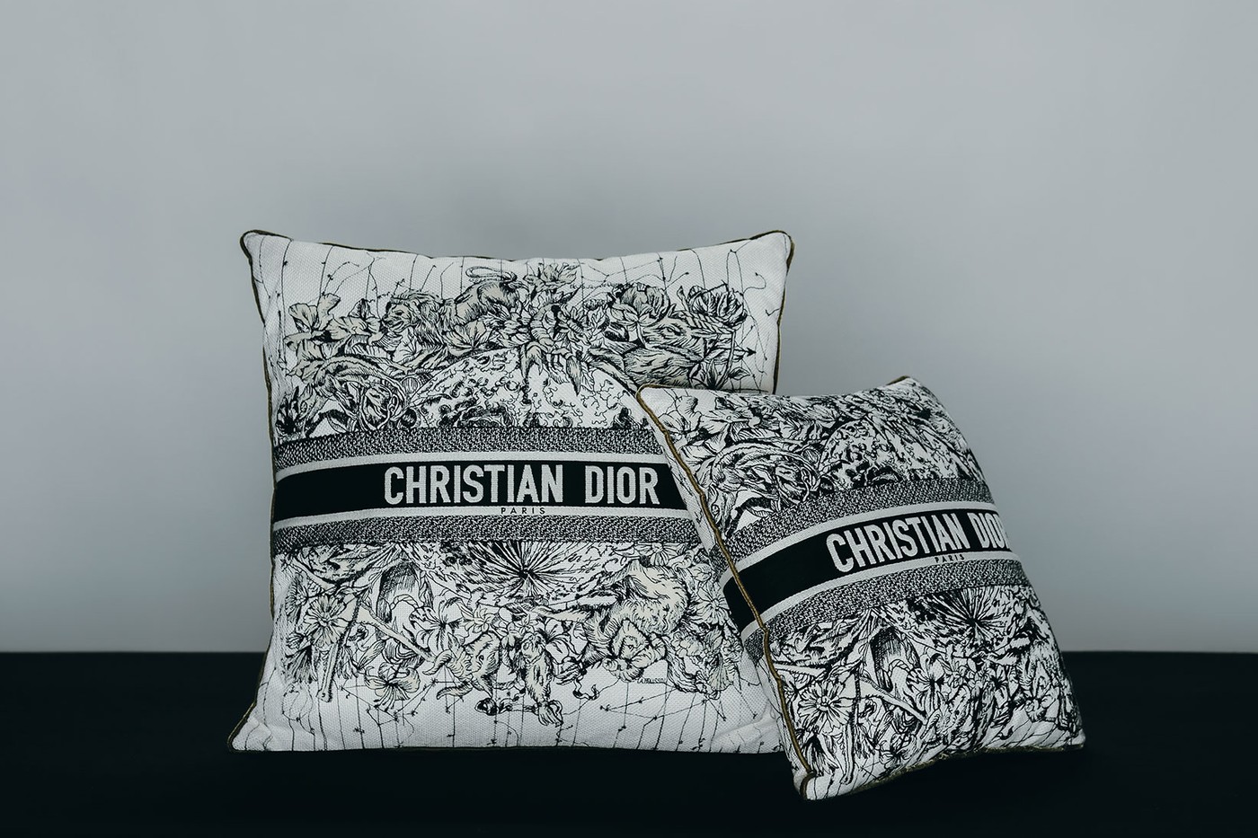 Dior выпустили коллекцию товаров для дома под названием Constellation. В нее вошли подушки и наборы десертных блюдец и тарелок для ужина.