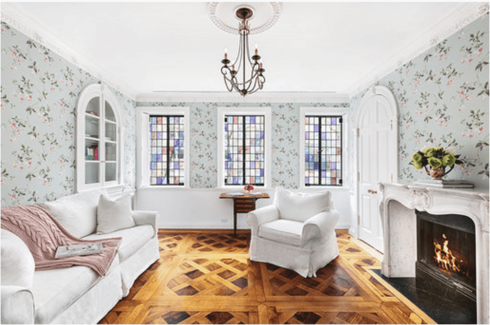 Квартира сохранила многие детали интерьера со времен Элеоноры: 6 каминов, расписанные вручную стены, потолки и винтовая лестница из красного дерева, двери с витражами. В просторной квартире площадью 485 квадратных метров — 4 спальни и 6 ванных комнат, которые были перепланированы и обновлены. С выходом на крышу открывается вид на Центральный парк. Терраса площадью 167 квадратных метров включает уютную зону отдыха и площадку для собак. Здесь можно проводить вечера с друзьями и знаменитыми соседями — в доме живут режиссер Мартин Скорсезе, актеры Ким Новак, Монтгомери Клифт и другие звезды.