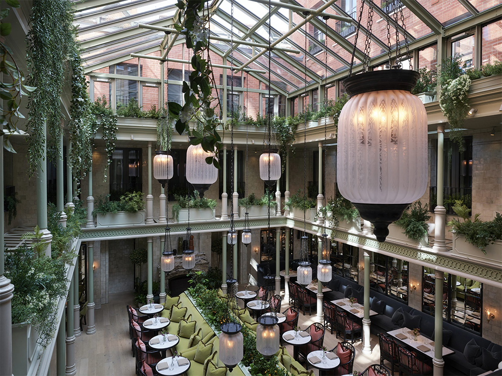 О том, что здание когда-то было тюрьмой, напоминает лишь его история. Дизайнеры окрасили стены в спокойный фисташково-болотный оттенок, на каждом этаже стоят живые цветы, а двор превратили в обеденный зал со стеклянным куполом и подвесными растениями.