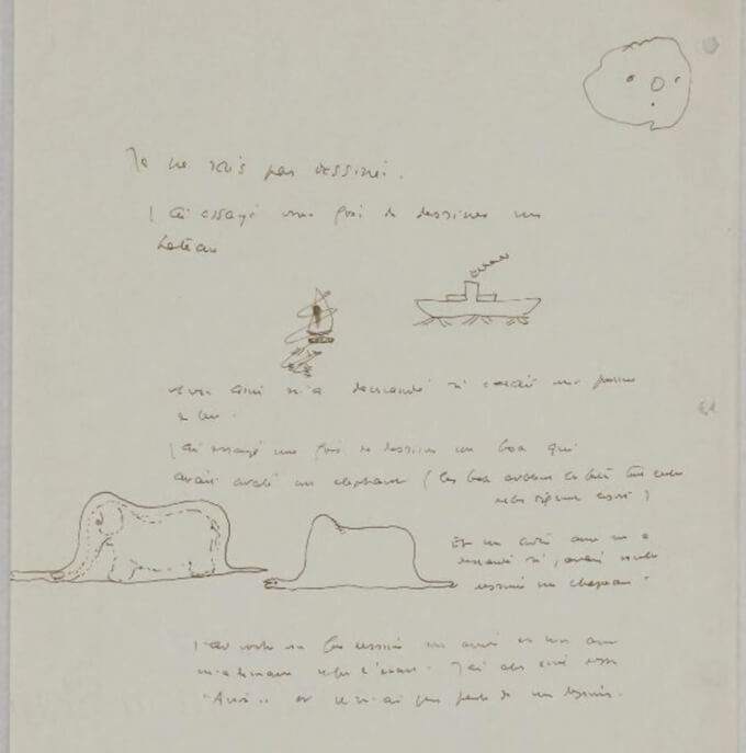 Помимо рисунков, в коллекции было небольшое стихотворение и любовное письмо, предназначенное жене Экзюпери Консуэло Сандоваль.