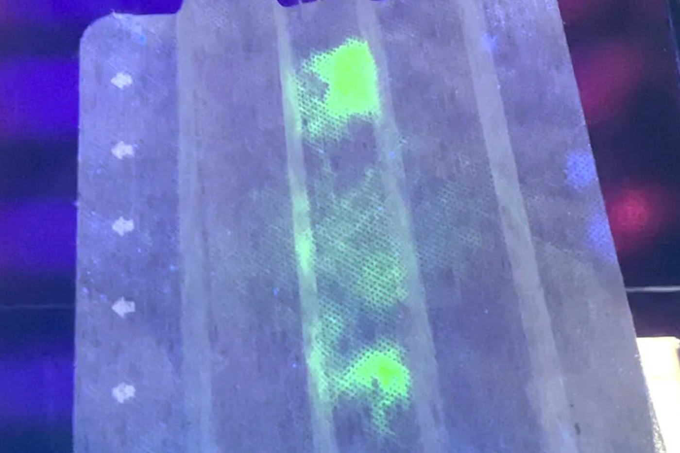 Дальше ученые извлекли антитела к коронавирусу из яиц страусов. Из них они создали специальный флуоресцентный краситель: если сбрызнуть им маску, проявятся шиповидные следы от СOVID-19.