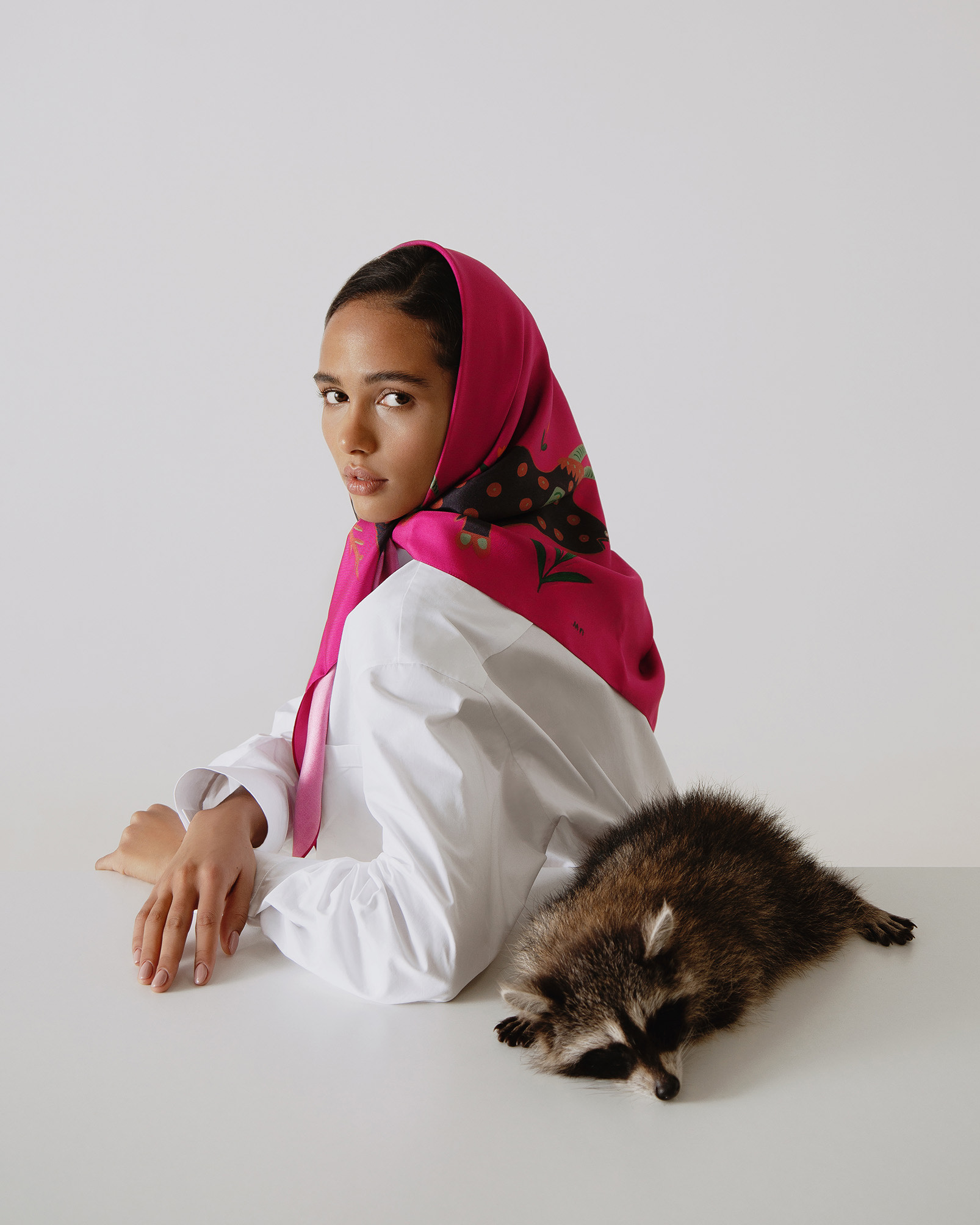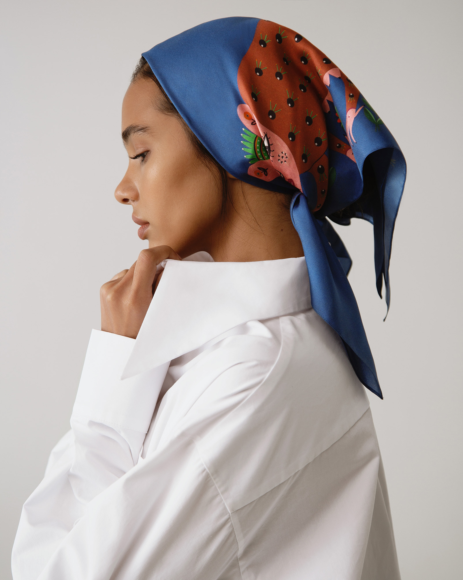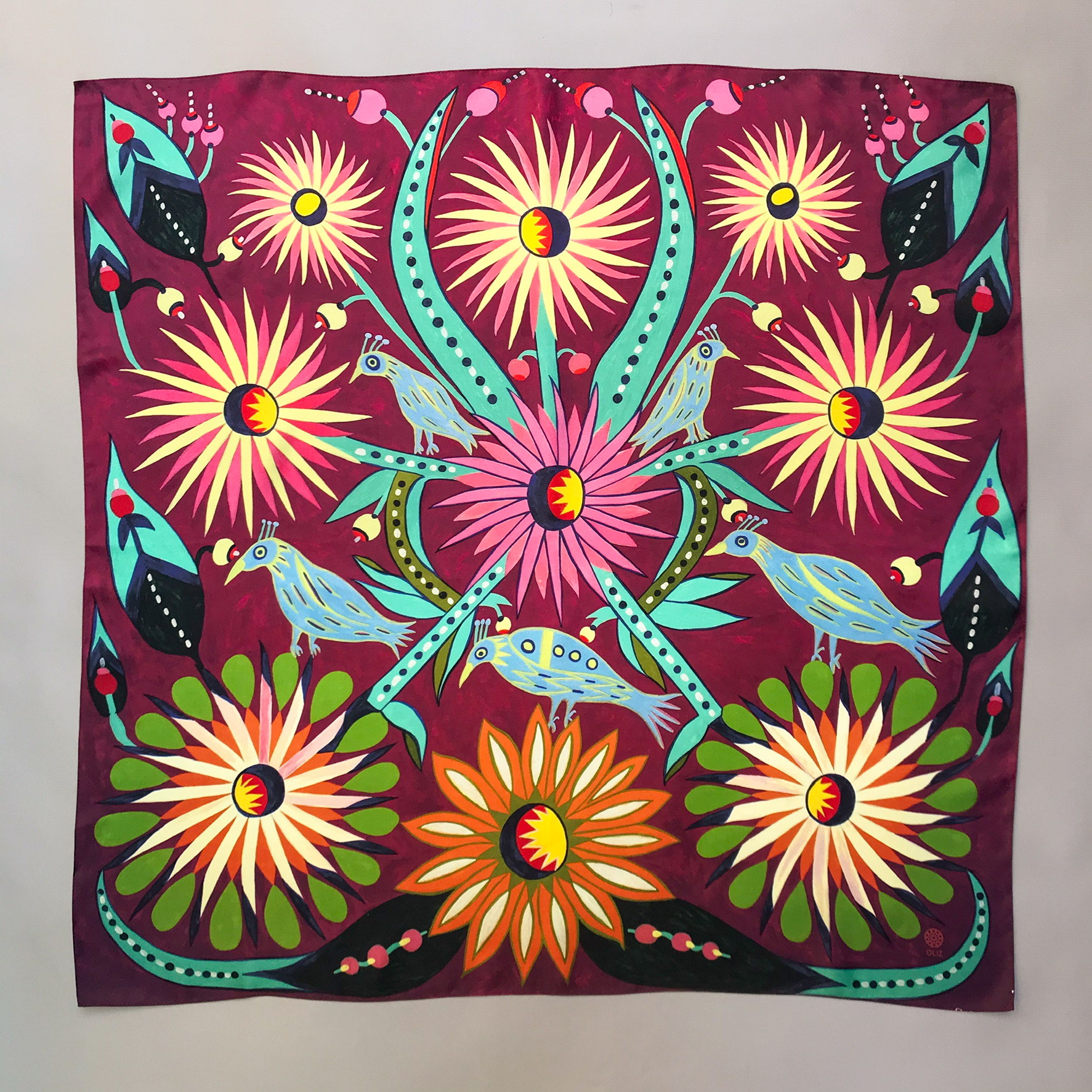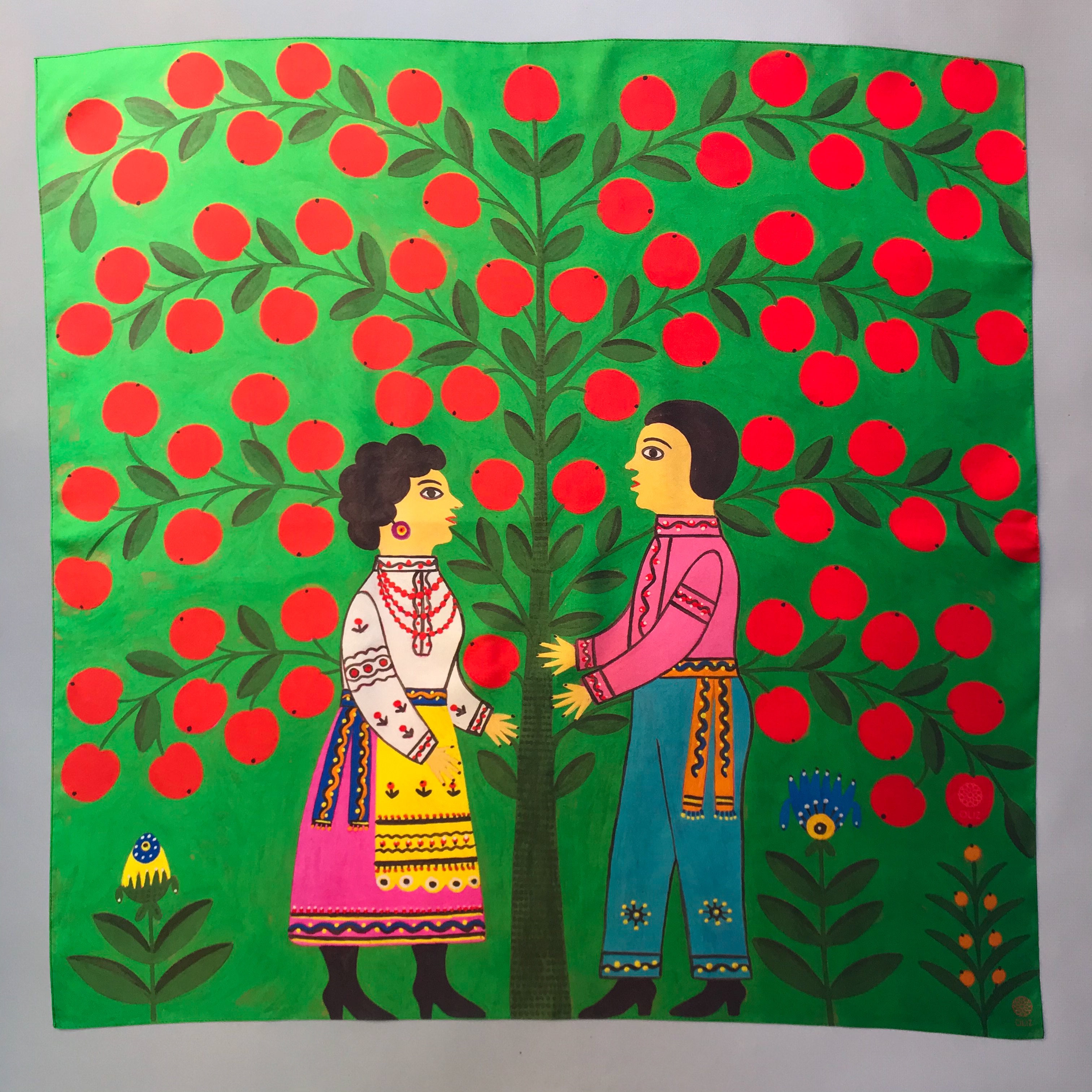 Oliz представили нову колекцію "Казки родини Примаченко". Картини пані Марії, її сина Федора та онука Івана з казковими звірами, фантастичними квітами, делікатними сюжетами були використані на хустинах з італійського шовку твіл.