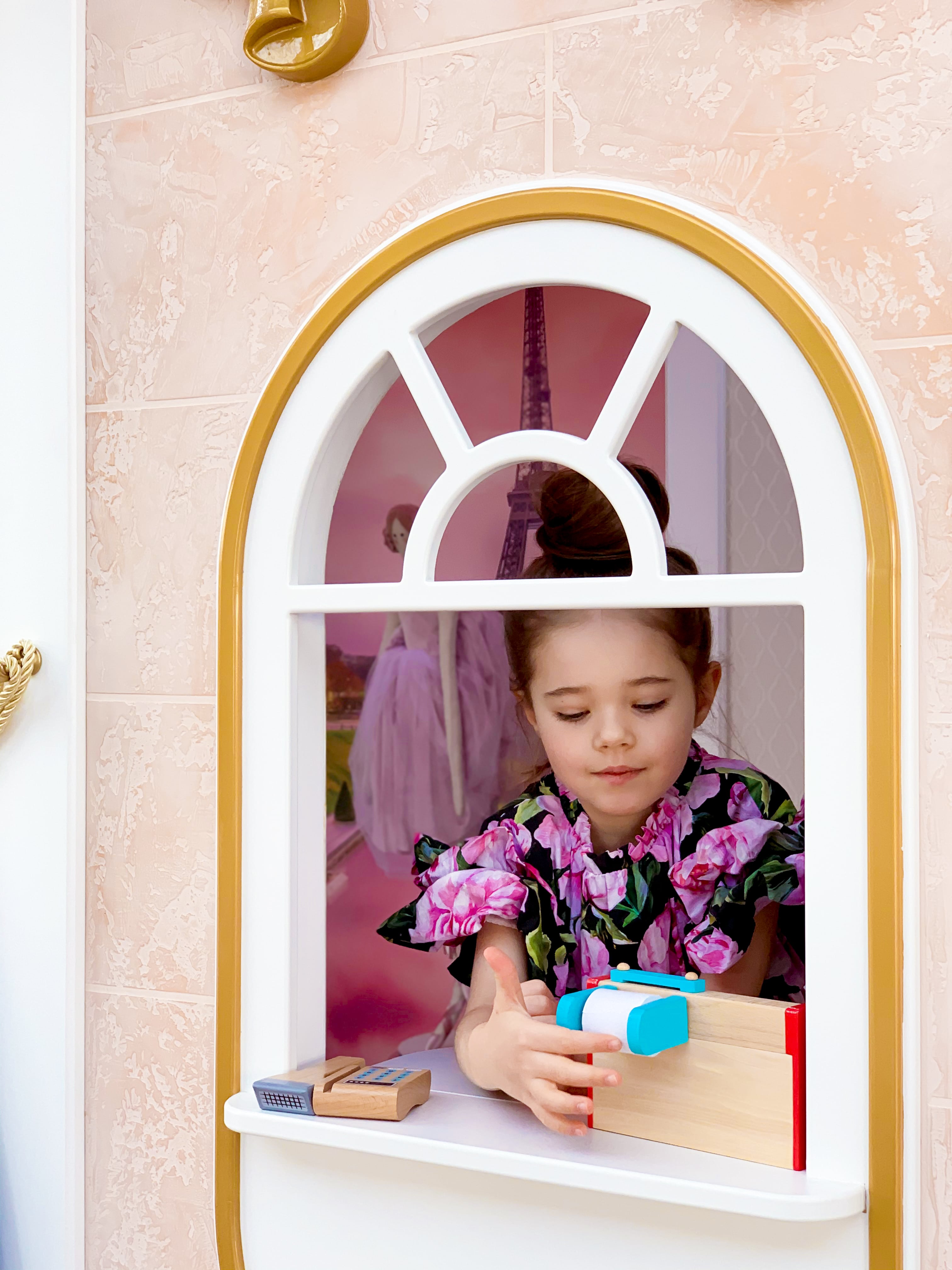 На самом же фасаде домика есть специальная меловая доска, где ребенок сможет вывесить нарисованную вручную афишу своего грядущего выступления. Родители, будьте готовы получить приглашение на самый незабываемый спектакль!