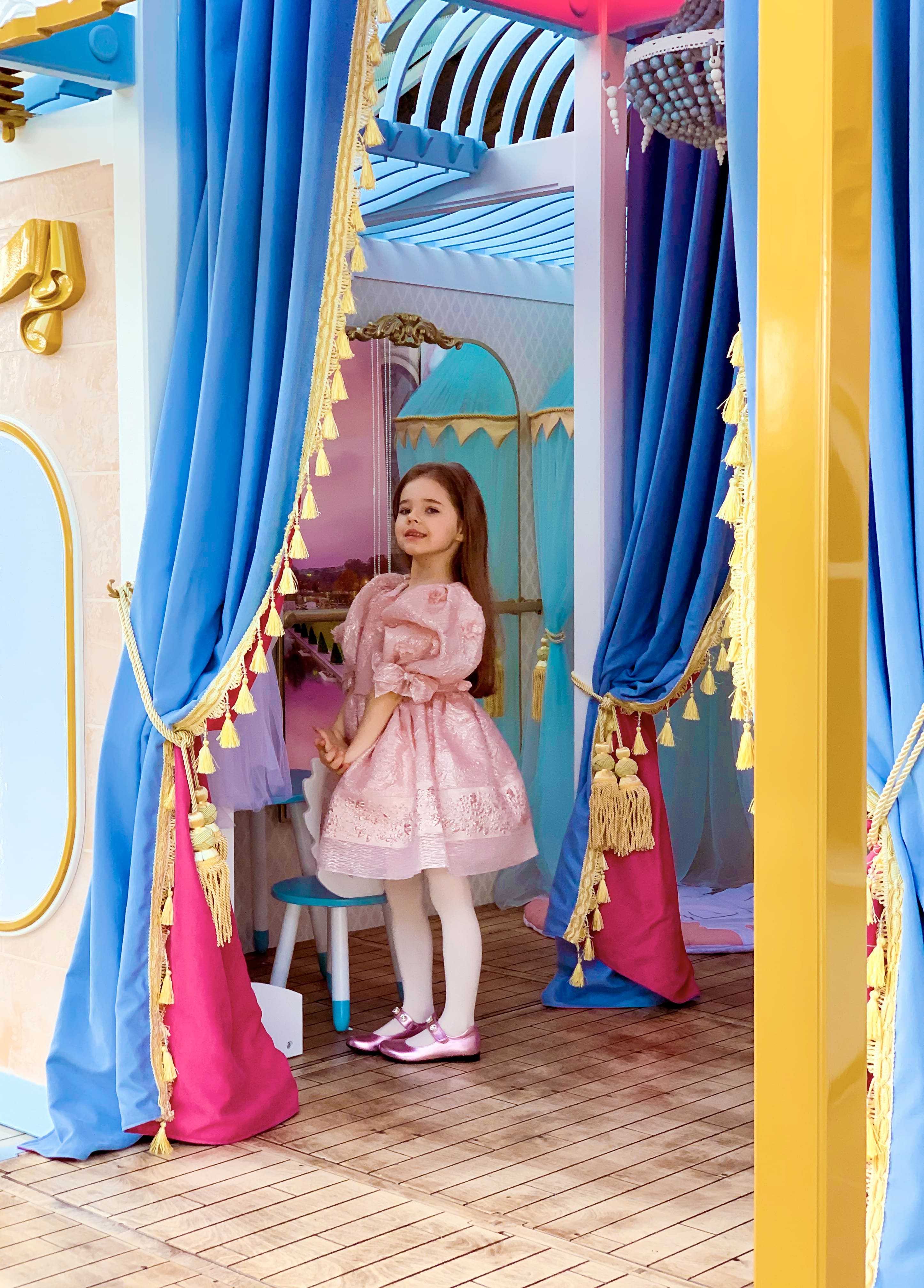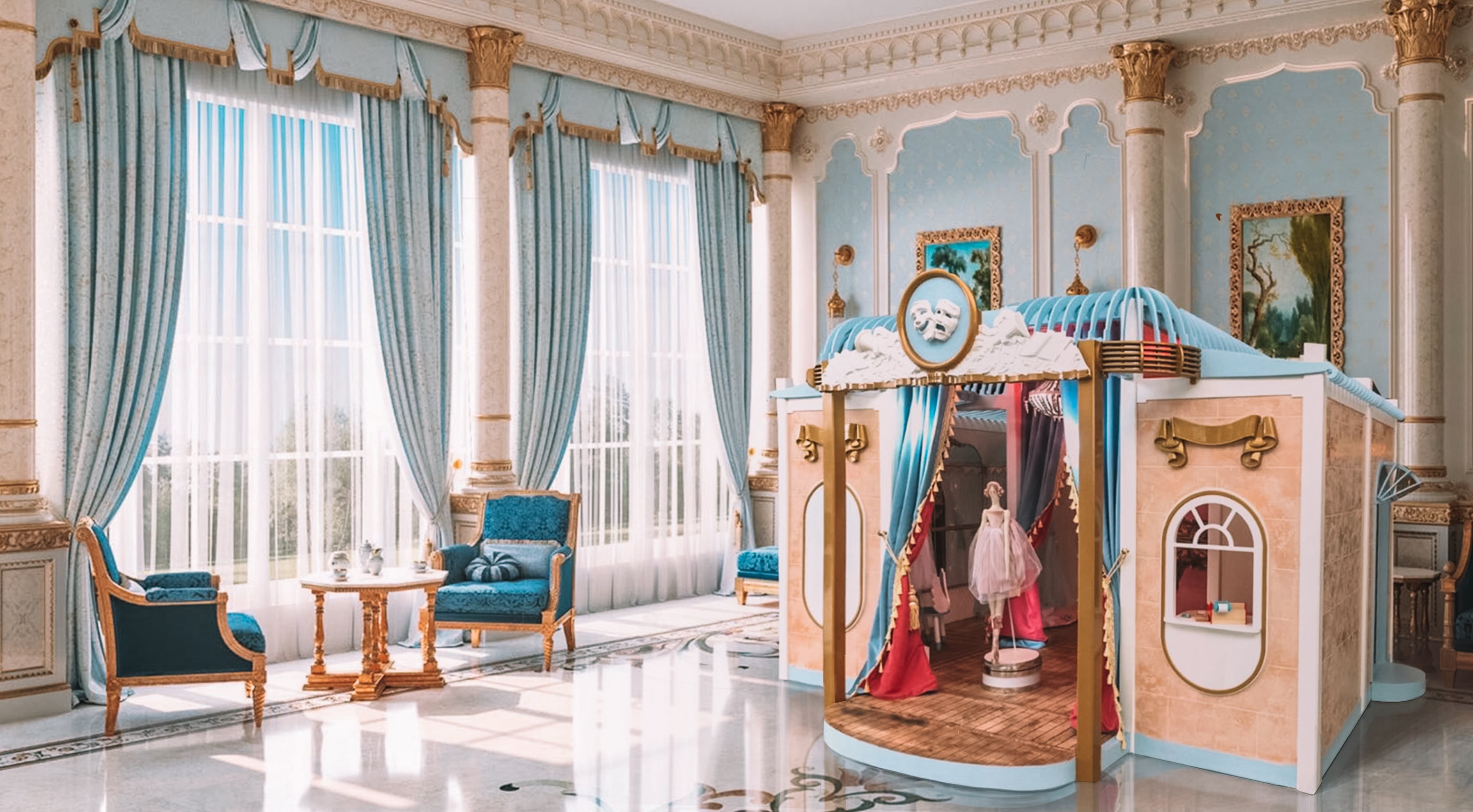 Несмотря на прилагательное «игровой» в описании, сама конструкция «Театра» имеет достаточно внушительные габариты, а его высота в базовой комплектации составляет 2,30 м. Визуально же архитектура и дизайн домика от Fiori полностью стилизованы под настоящее здание театра, где выдержанный цвет фасада украшают декоративные золотые барельефы.