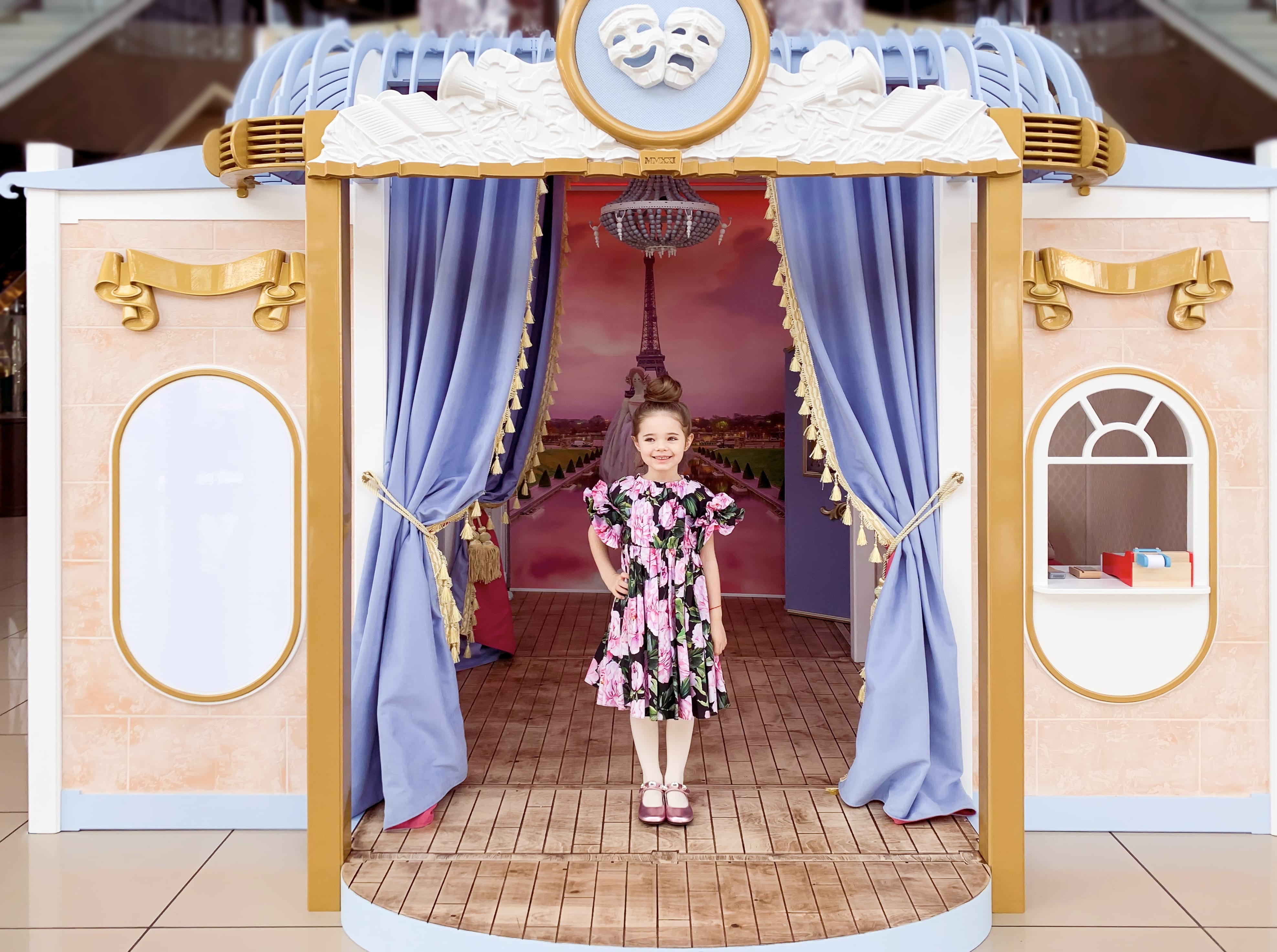 Игровой домик «Театр» включает в себя все составляющие настоящего храма Мельпомены: помимо основной и авансцены с кулисами в его конструкции предусмотрены также гардеробная для костюмов, гримерная с туалетным столиком и даже небольшое пространство с зеркалом и балетным станком для репетиций.