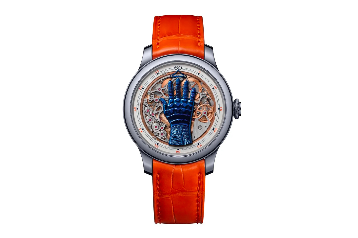 Механизм руки-стрелки был вдохновлен отцом современной хирургии Амбруазом Паре. Разные пальцы появляются и исчезают на циферблате, указывая часы, а индикатор вращающегося диска показывает минуты.
