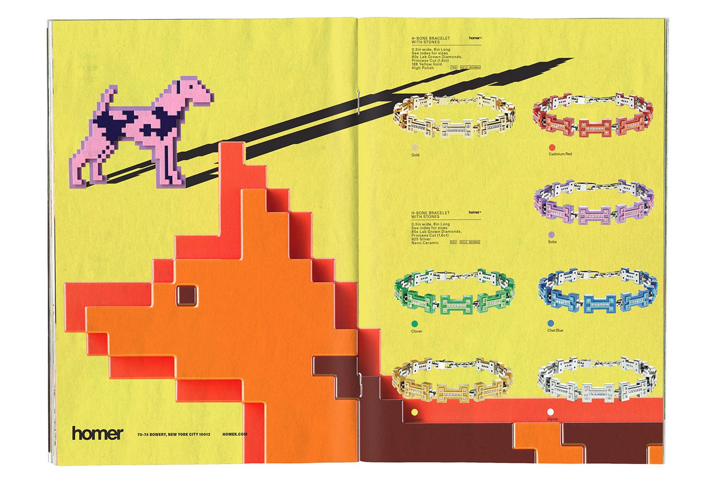 Символы с изображением собак появляются в коллекции в виде пикселей. Таким образом Homer хотели показать качества – любовь, радость, поддержку, – которые привносят животные, появляясь в доме. "Похоже, что собака – это безоговорочная верность", – рассказывает бренд о своей новой коллекции.