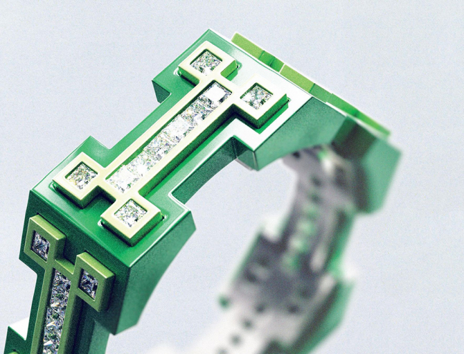 В коллекцию вошли браслеты, подвески и кольца, дополненные символами в виде собак. Ювелирные изделия изготовлены из серебра с нанокерамикой и 18-каратного золота, добытого в США, как и бриллианты, которые создаются в современных этичных лабораториях. Все ювелирные изделия производят вручную в Италии.