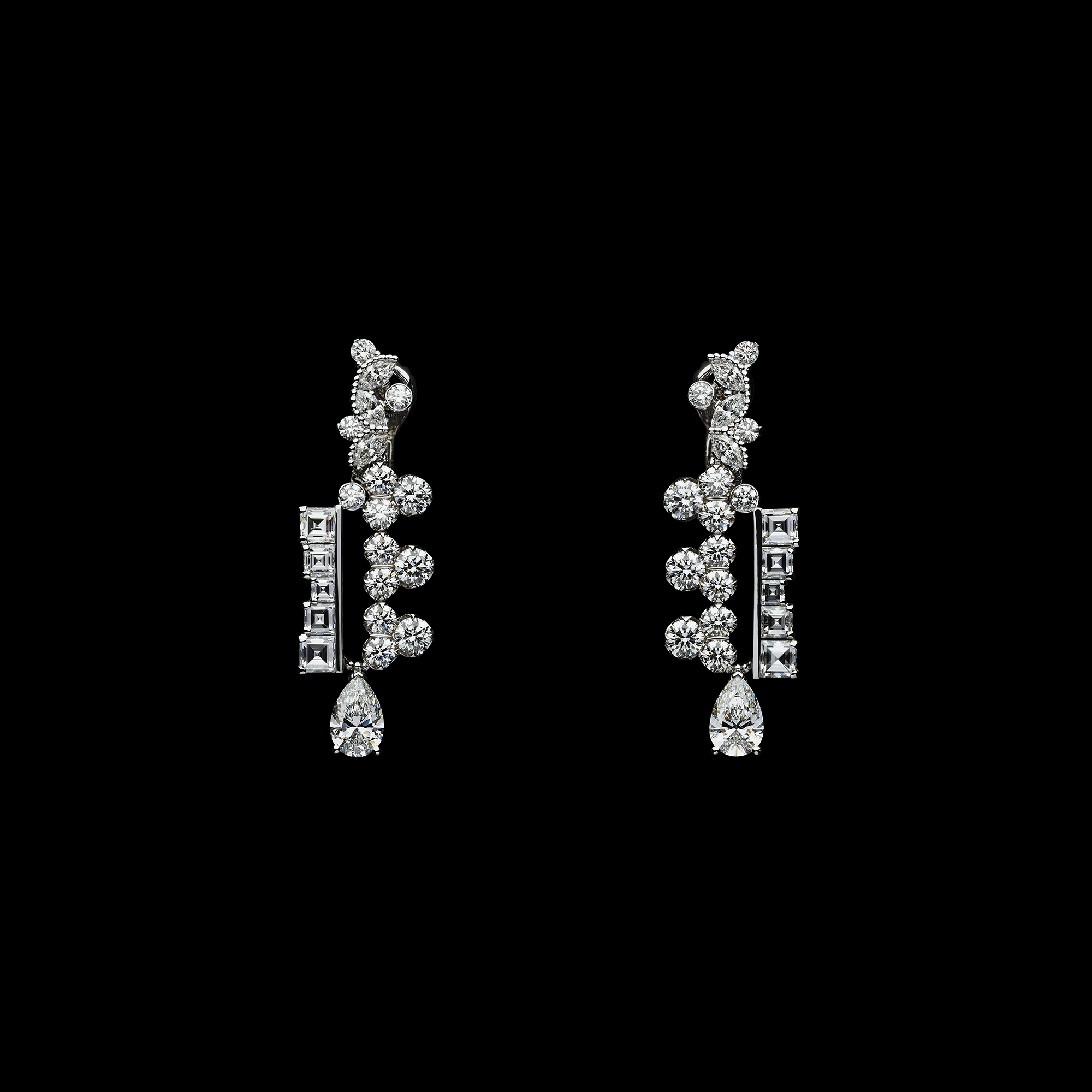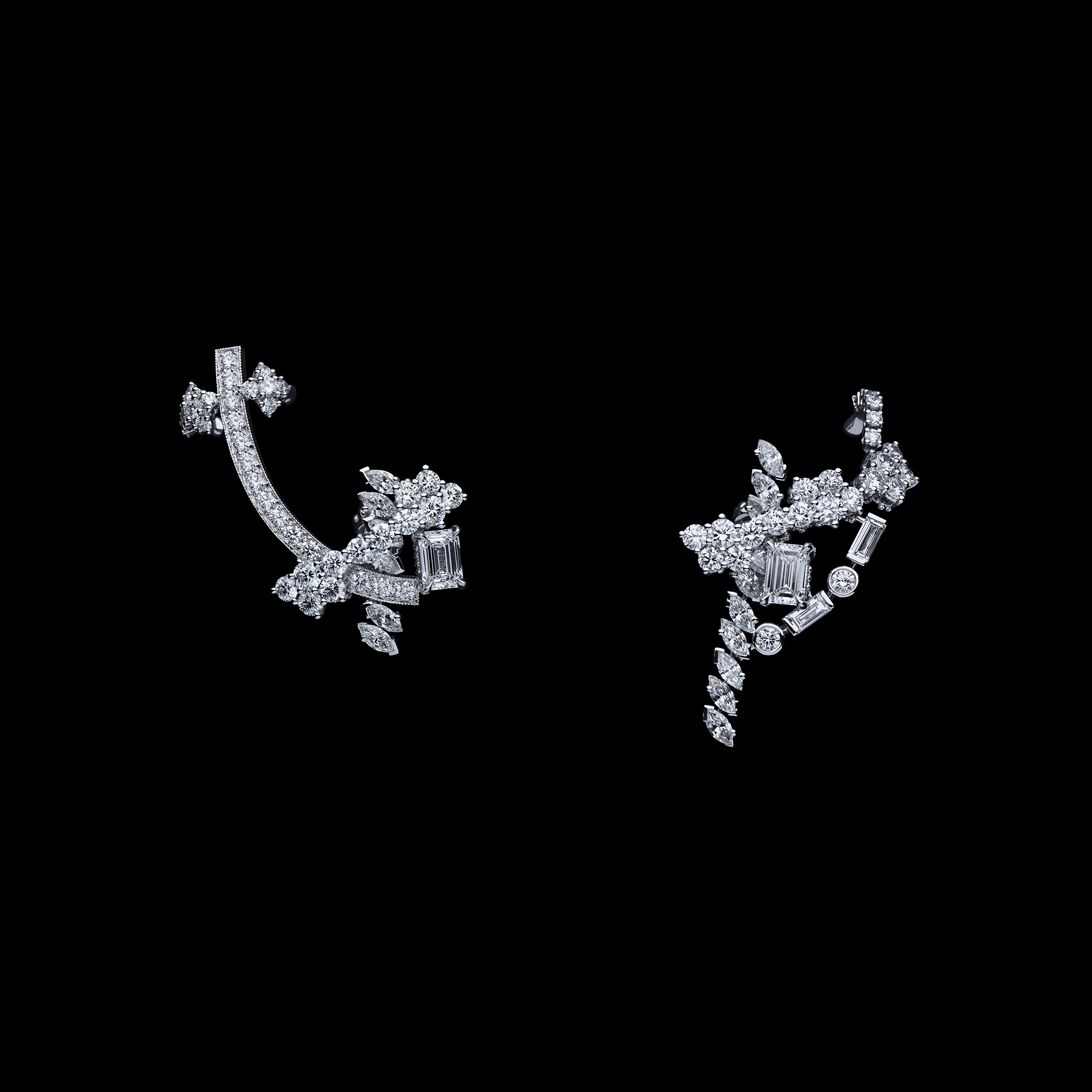 Изделия в новой коллекции – асимметричные. Смелые мотивы Виктуар де Кастеллан подчеркивают ожерелья, браслеты, кольца и серьги с бриллиантами и яркими оттенками сапфиров, рубинов и изумрудов.