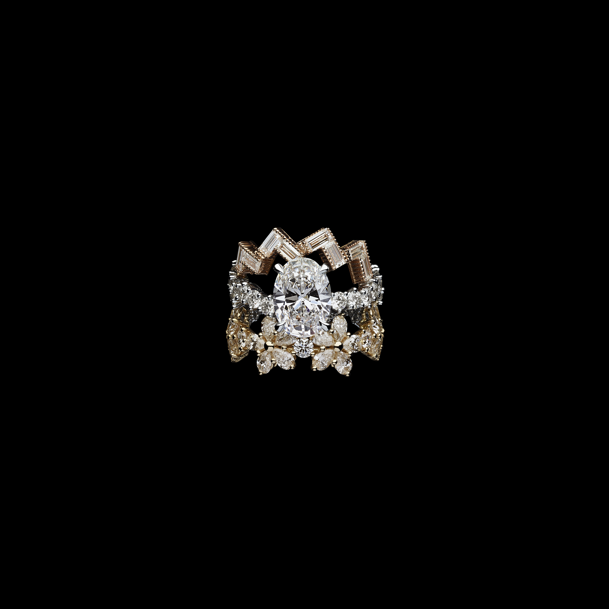 Виктуар черпала вдохновение в изысканных отделках, которыми украшены ее предыдущие коллекции ювелирных изделий. Так, ленты, усыпанные драгоценными камнями, пересекаются одна с другой, создавая уникальные формы.