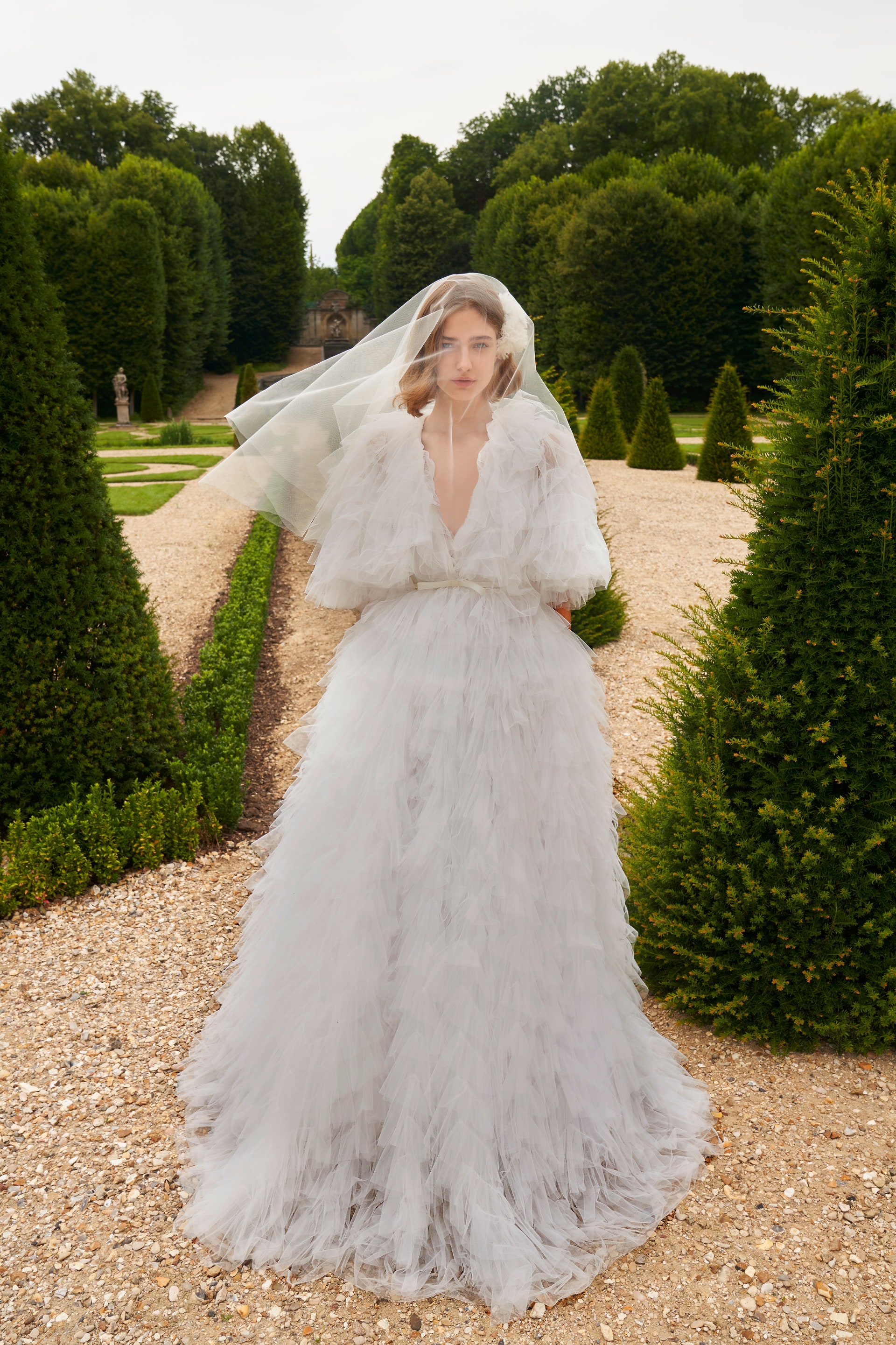 В свадебных платьях Giambattista Valli шли под венец Амаль Клуни и Шарлотта Казираги, а беспрецедентную роскошь творений дома звезды выбирают для выходов на красную дорожку. Новая капсульная коллекция авторства Джамбаттисты Валли получилась традиционно эффектной и пышной. Она называется Love и объединяет все известные коды бренда: жемчуг, тюль, слои кружев, атласные банты, скульптурные и женственные силуэты.