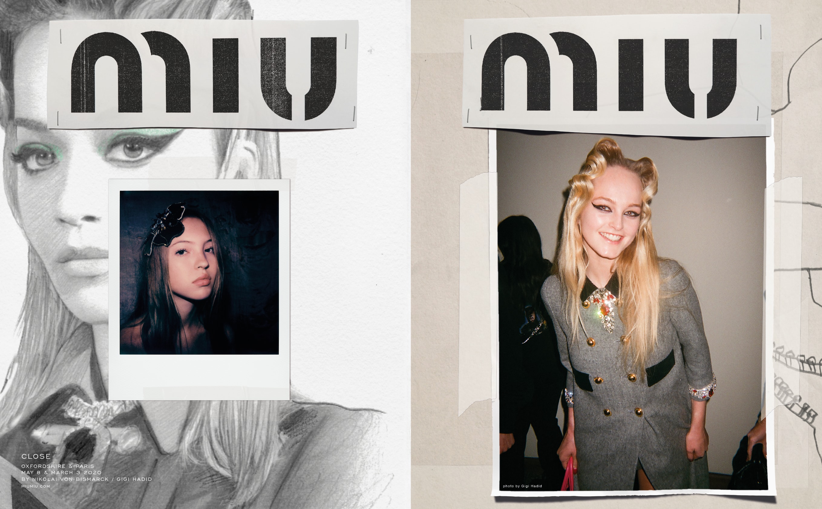 Кампания вышла под названием Close. Съемки рекламы проходили до, во время и после коронавирусных локдаунов. Над проектом работали Джиджи Хадид, Лиз Коллинз, парень Кейт Мосс Николай фон Бисмарк, Эмбер Пинкертон и другие. Все авторы представили свои снимки, сделанные на бэкстейдже показа Miu Miu.