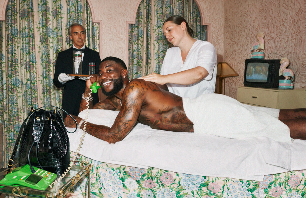 Съемки проходили на вилле La Furibonda, а среди гостей были Игги Поп, Сиенна Миллер, рэпер Гуччи Мейн, а также графиня Марисела Федеричи и итальянские художники Орландо Миани и Анджело Букарелли. На закрытой Gucci-пати в распоряжении знаменитостей был массаж в 4 руки, бар, ванна с пеной (а для любителей большой воды – бассейн) и, конечно же, вкусные закуски.