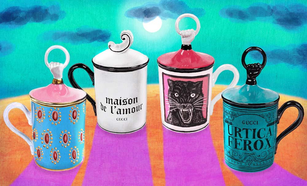 Дом моды Gucci выпустил коллекцию посуды, вдохновленную итальянской культурой и креативным наследием бренда. Так, многие вещи из новой коллекции являются дизайнерскими отсылками к предметам одежды, выпущенным маркой ранее.