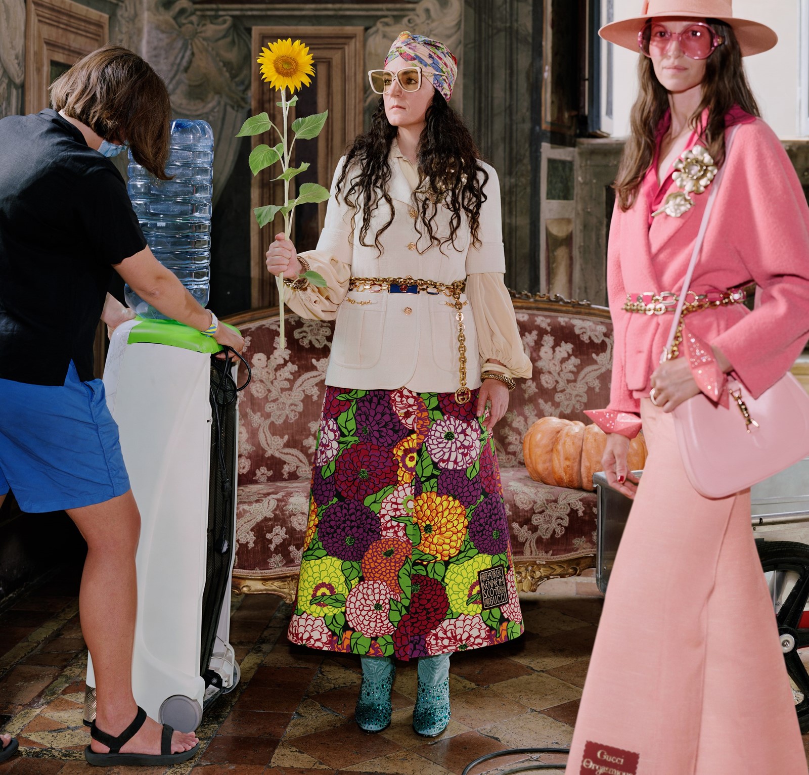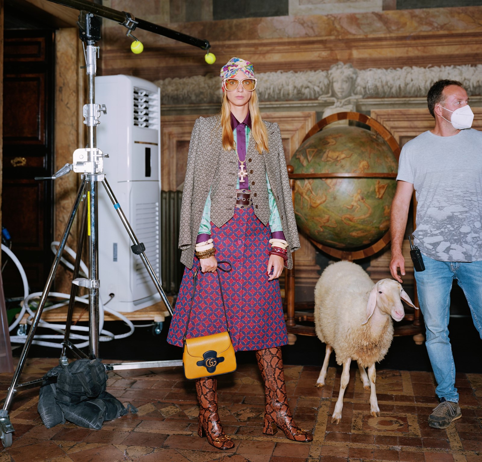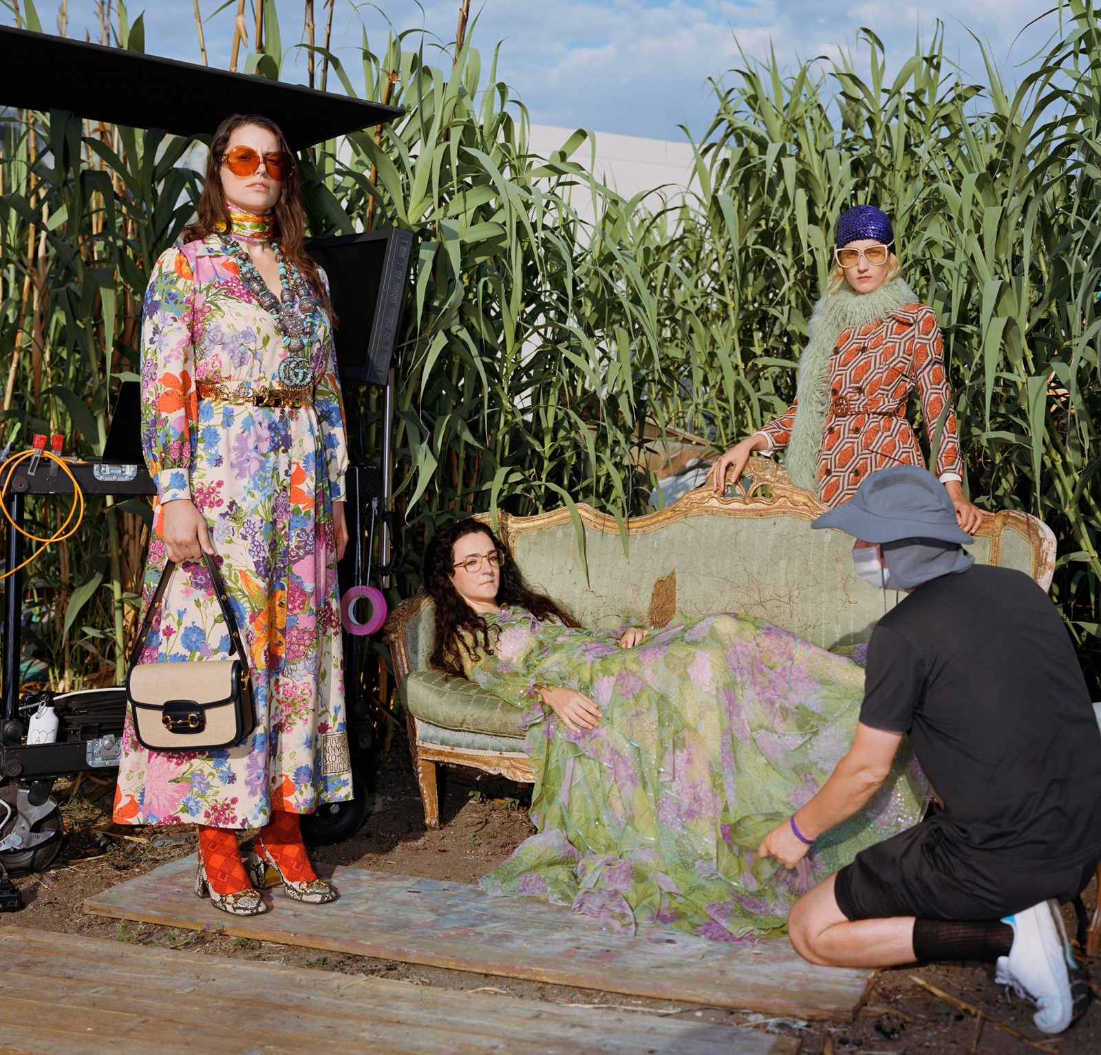 Gucci выпустили рекламную кампанию новой коллекции Epilogue. Снял кампейн американский фотограф Алек Сот. Съемки проходили на двух совершенно разных локациях Рима: в историческом Палаццо Саккетти в стиле позднего маньеризма и на фоне зданий, покрытых граффити, в районе Кампо Боарио. На фото как будто запечатлен хаос бэкстейджа съемочного процесса, среди которого, кажется, только модели сохраняют спокойствие и слаженно позируют.