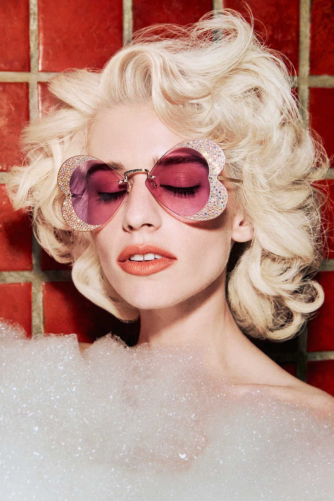 Похоже, Алессандро Микеле решил сменить современность с винтажной эстетикой на гламурный образ жизни голливудских звезд 50-х годов. Так, в коллекцию вошли очки в оправе "кошачий глаз", с геометрической оправой, инкрустированной блестящими кристаллами; ярко-розовые очки с линзами в форме сердца и другие.